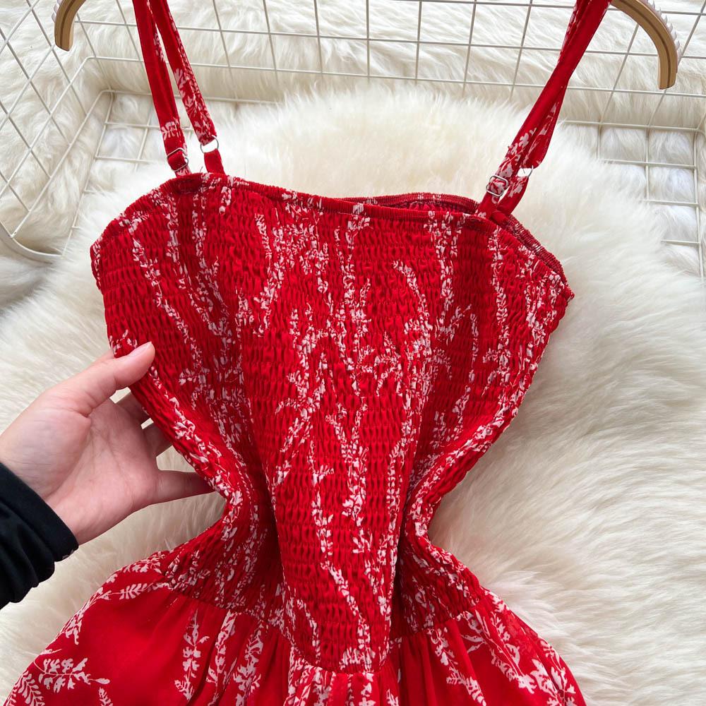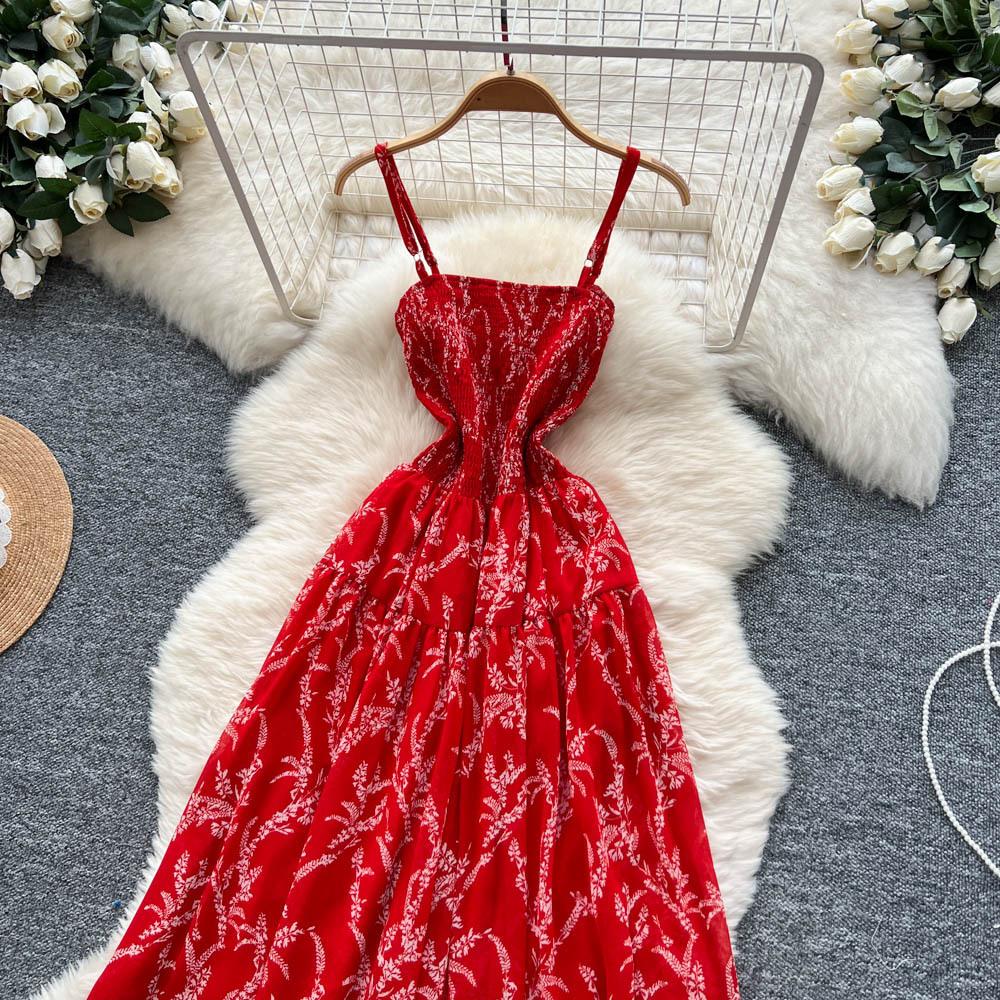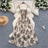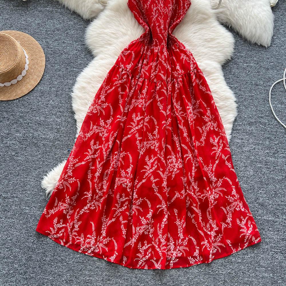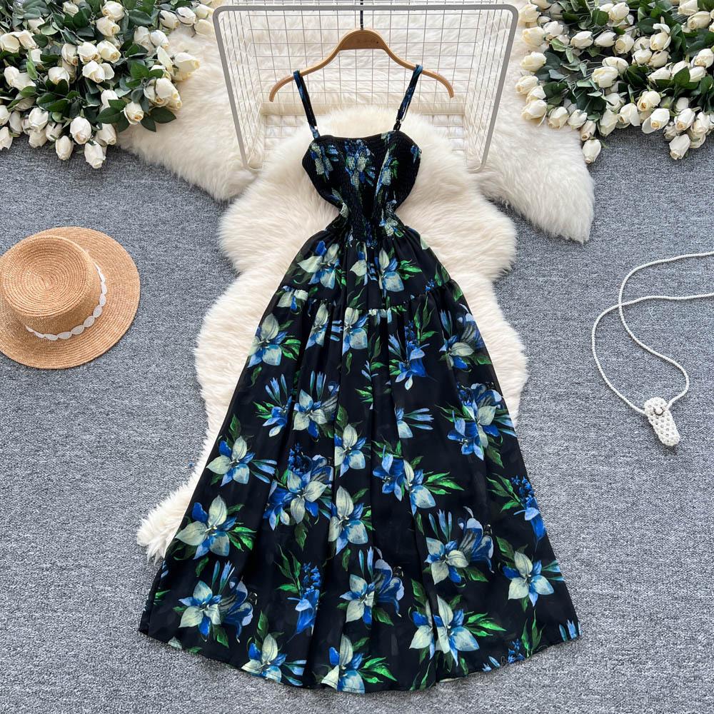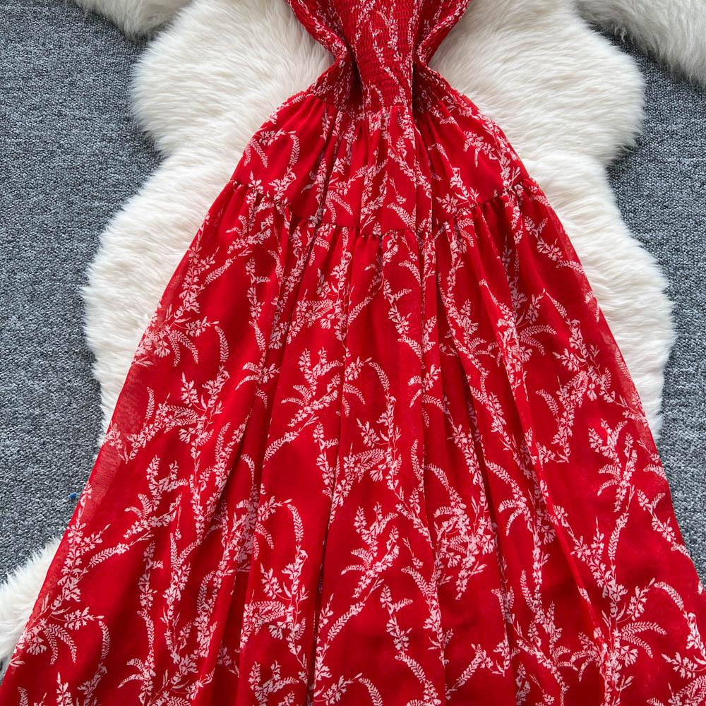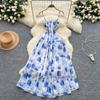 Compra Vestido nicho estilo vacacional retro para mujer 2025 verano francés cintura adelgazante temperamento floral strapless vestido largo al por mayor en Joom.pro