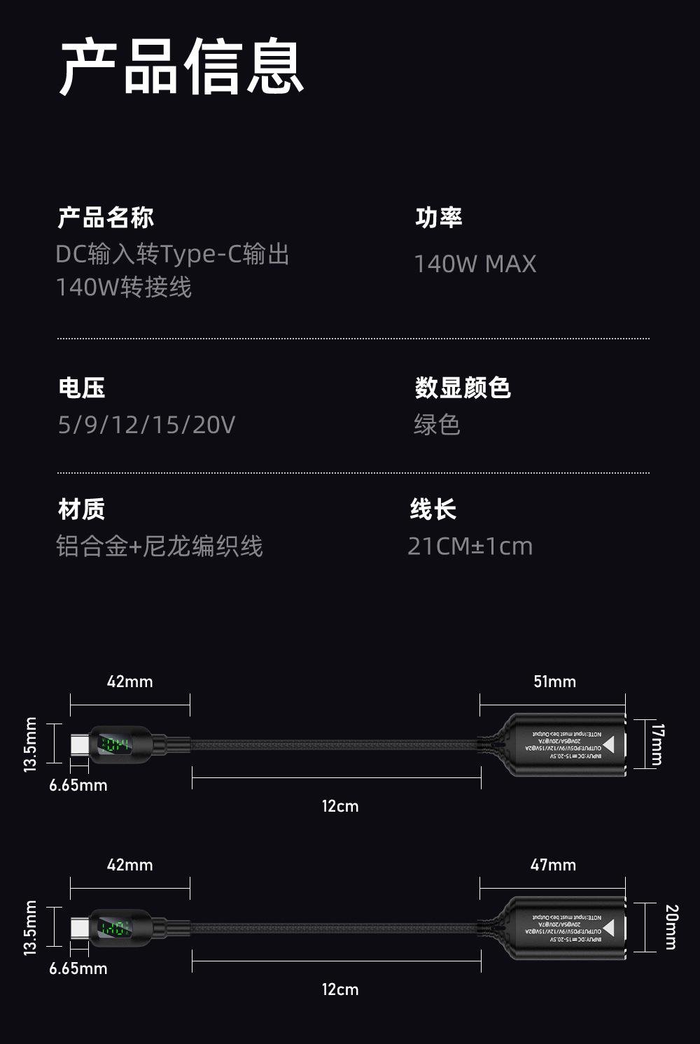 【Type-c male to 4506 female】140W digital display conversion cable