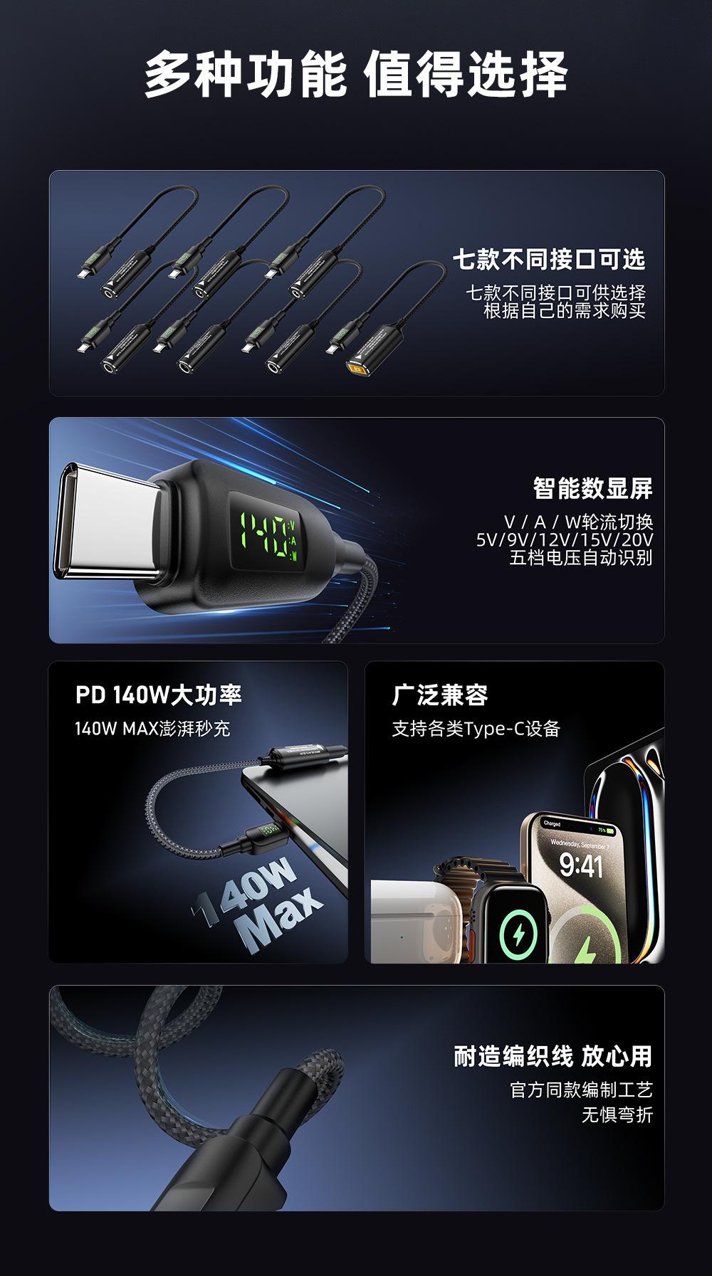 【Type-c male to Lenovo square port female】140W digital display conversion cable, 【Type-c male to 7955 female】1...