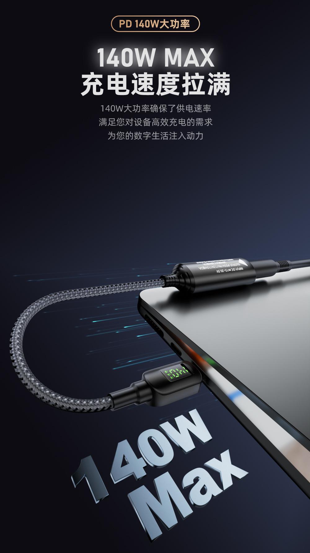 【Type-c male to 5525 female】140W digital display conversion cable