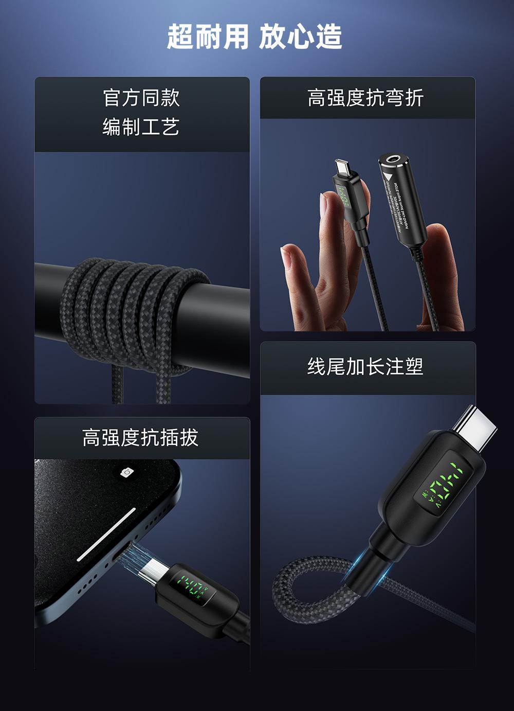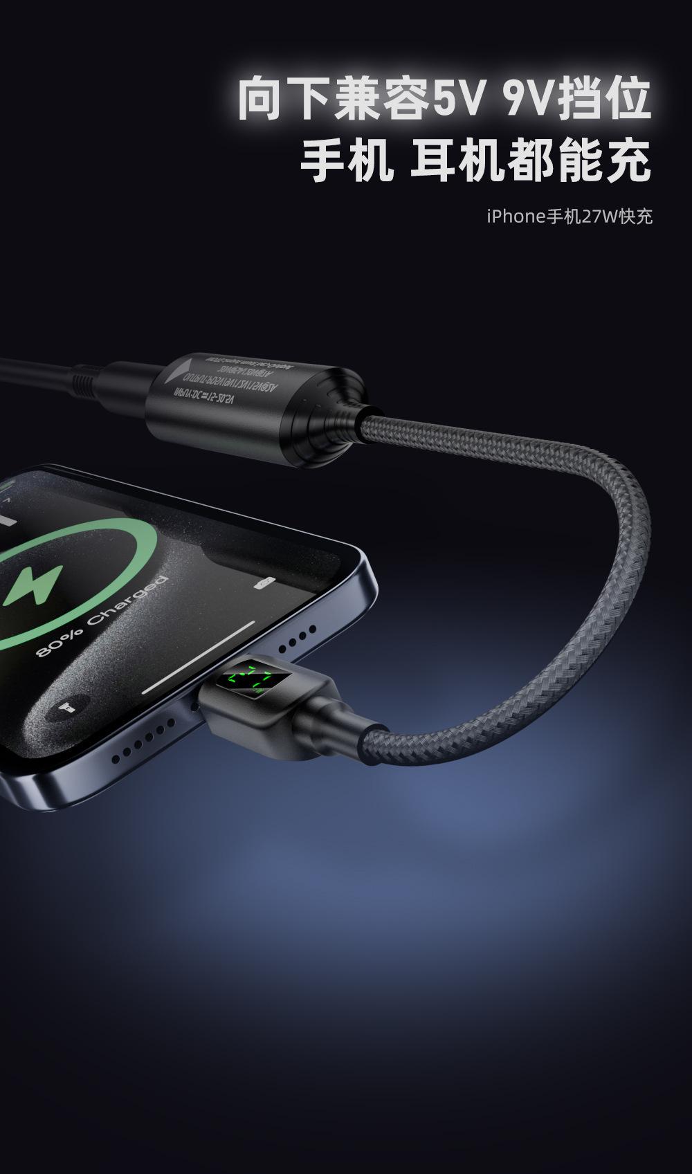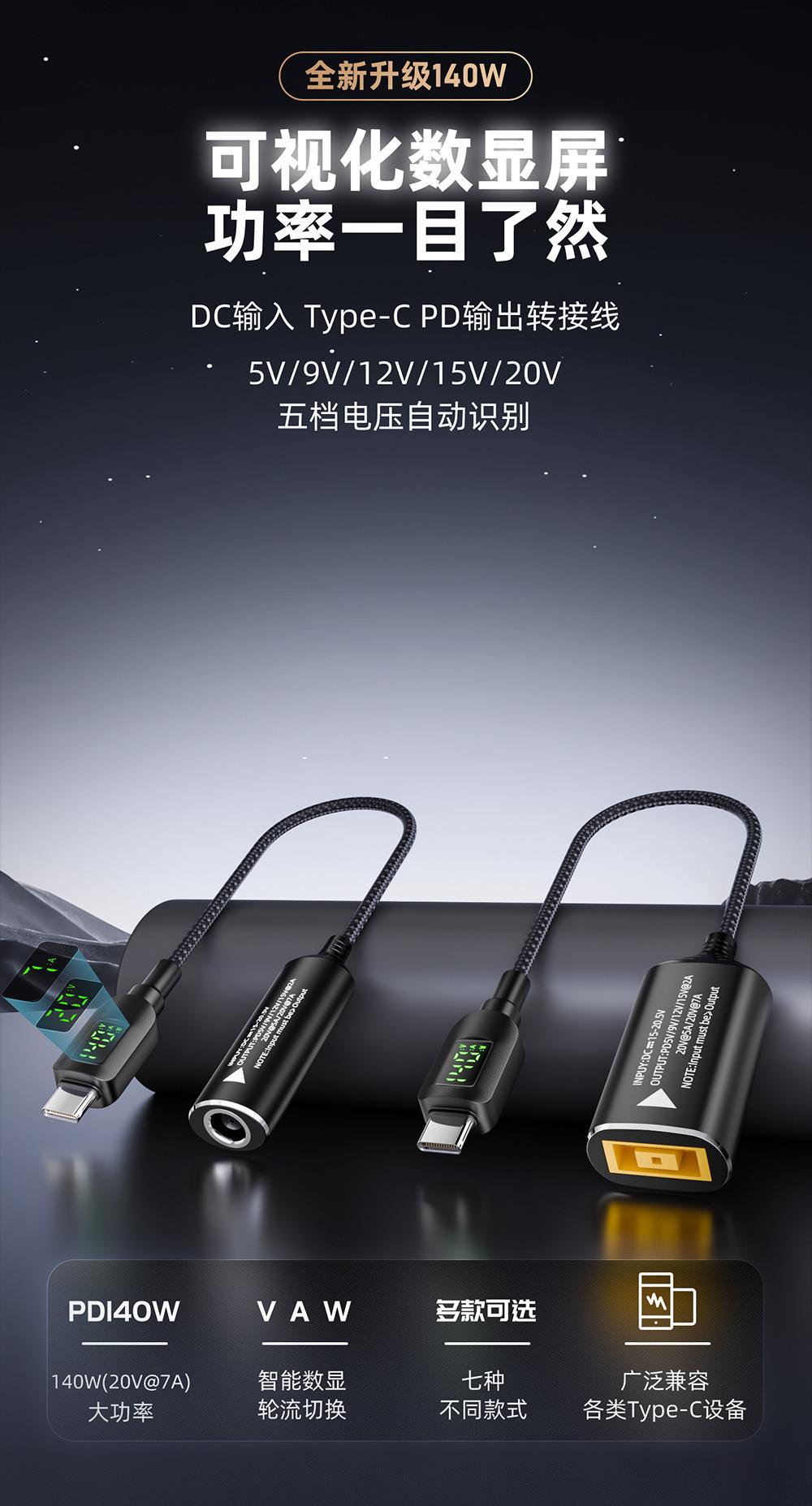 Compra Puerto de alimentación CC a tipo C pantalla digital cable de carga de identificación automática cable de conversión PD140w 5v/9v/20v al por mayor en Joom.pro