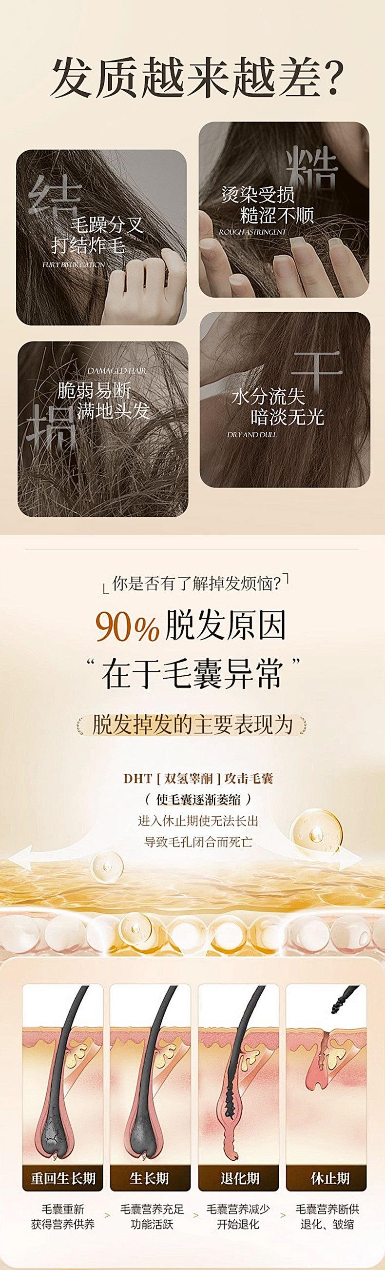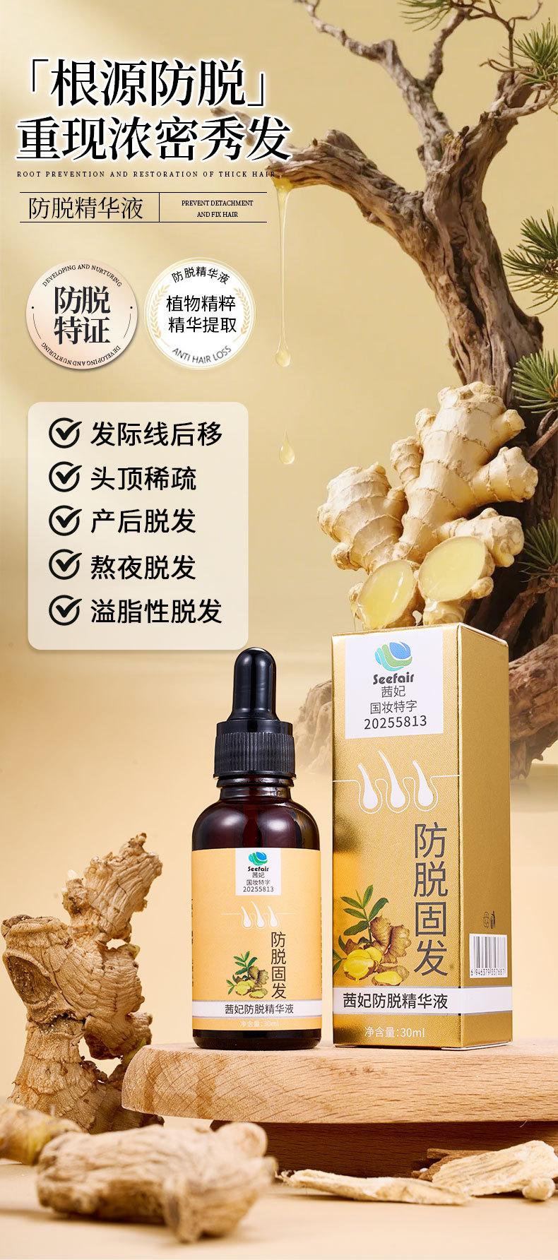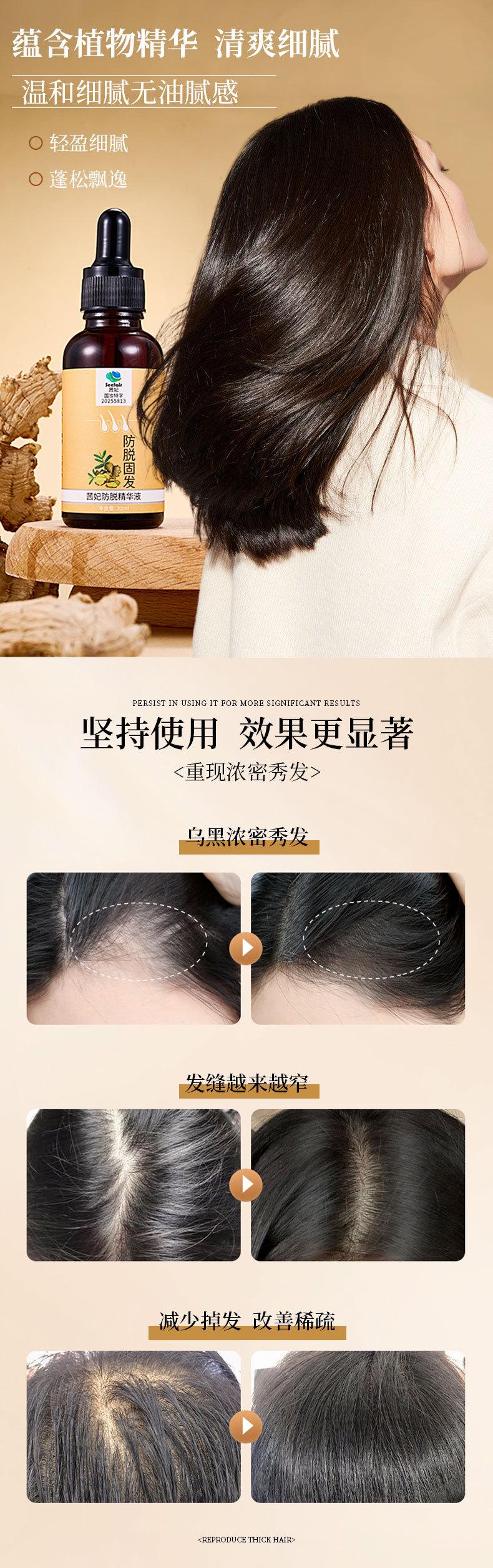 Esencia Qianfei Anticaída y Fortalecedora del Cabello Esencia de Extracto de Planta Herbal de Jengibre Fortalece las Raíces del Cabello, Previene la Caída del Cabello, Nutre el Cabello