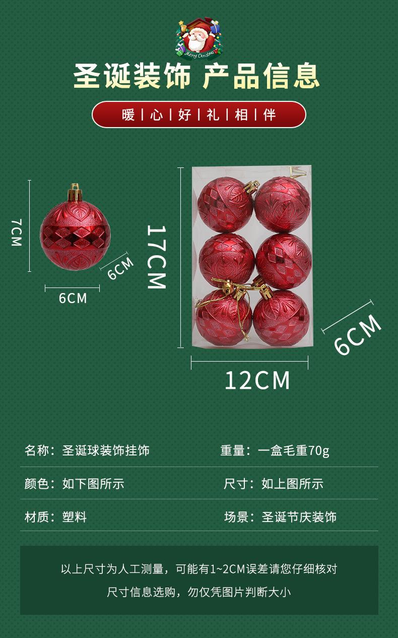 Bola decorativa navideña transfronteriza de Amazon de 6 cm con doble diamante, bola navideña con diseño de campo y colgante para árbol de Navidad.
