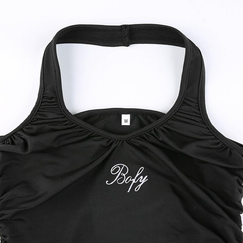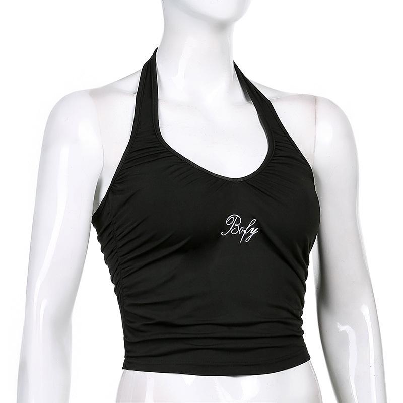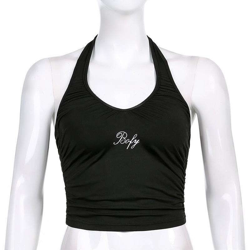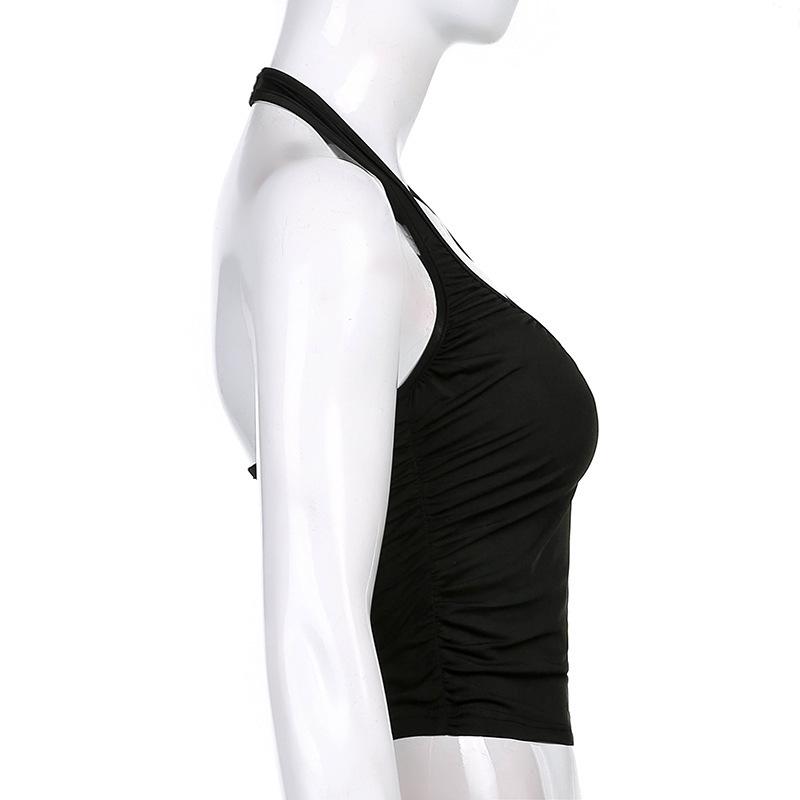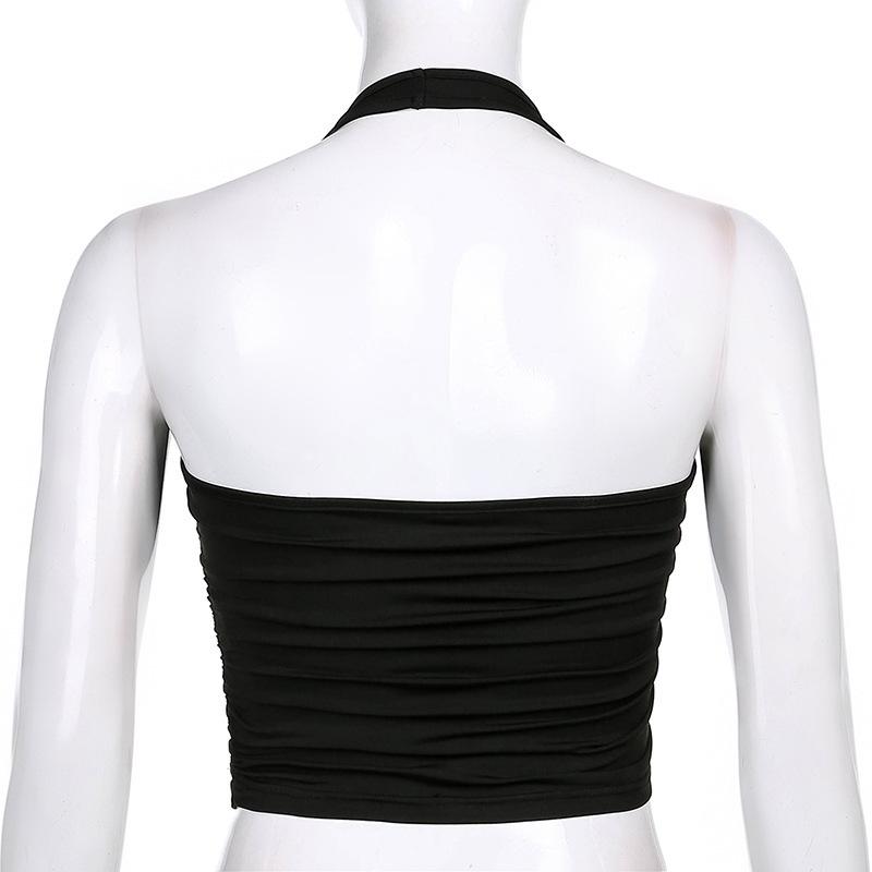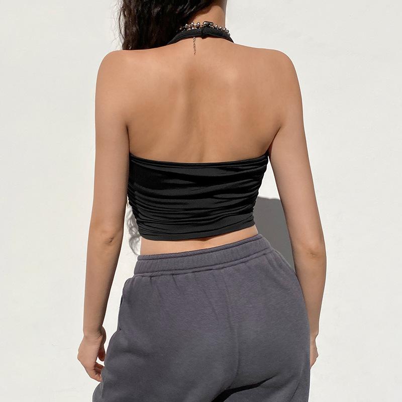 Verano 2025 Nueva Moda Espalda Descubierta Tirante Halter Color Sólido Corte Bajo Chica Hot Adelgazante Tank Top Corto