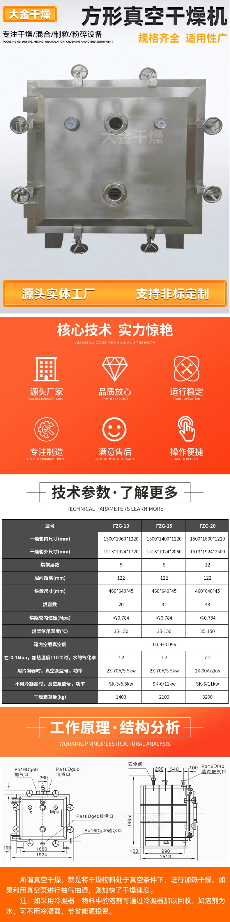 Polifenol de té equipo de secado de acero inoxidable secador al vacío para ingredientes alimentarios secador cuadrado de llenado