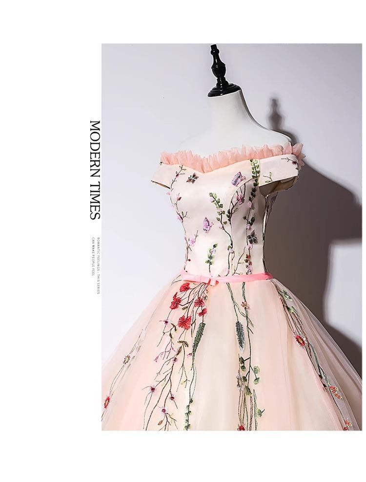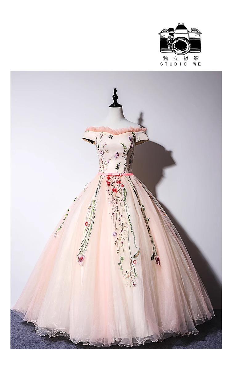 Vestido de Boda de Actuación para Mujer 2025 Nuevo Estilo Novia Floral Colorido Talla Grande Largo hasta el Piso Otoño e Invierno Coro Vestido Largo Transfronterizo