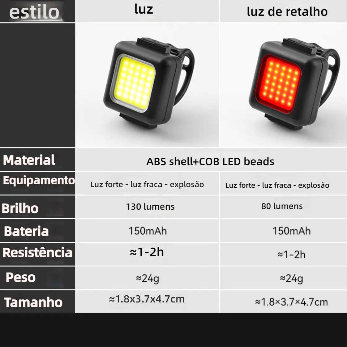 Este Juego de Luces USB Recargables es el aliado perfecto para tus noches de pedaleo. Con un diseño mini y ligero pero con Luces Focales de Alta Intensidad, ilumina el recorrido con claridad garantizando visibilidad total en ambientes oscuros.