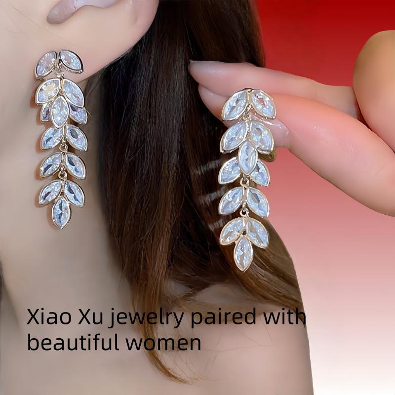 Aretes de Borla de Trigo Zircón 2025 Aretes de Atmósfera de Lujo Accesible Aretes de Moda de Alta Gama Elegantes Venta al por Mayor
