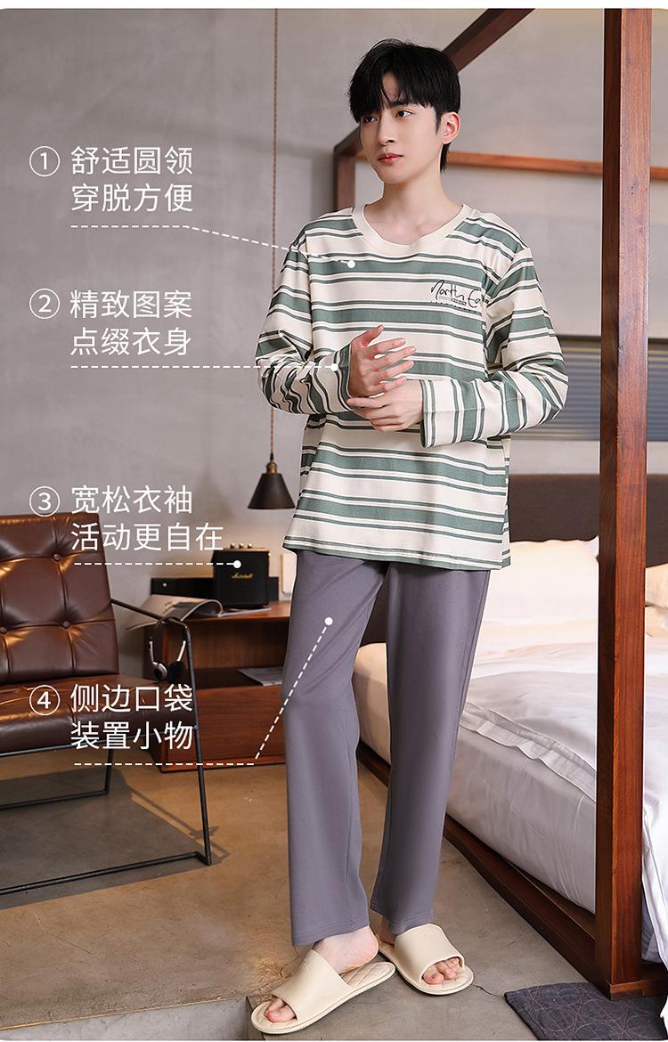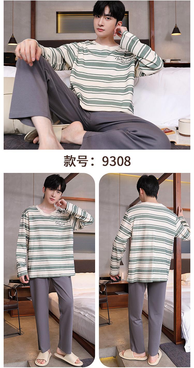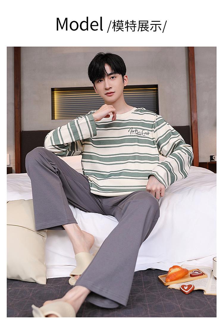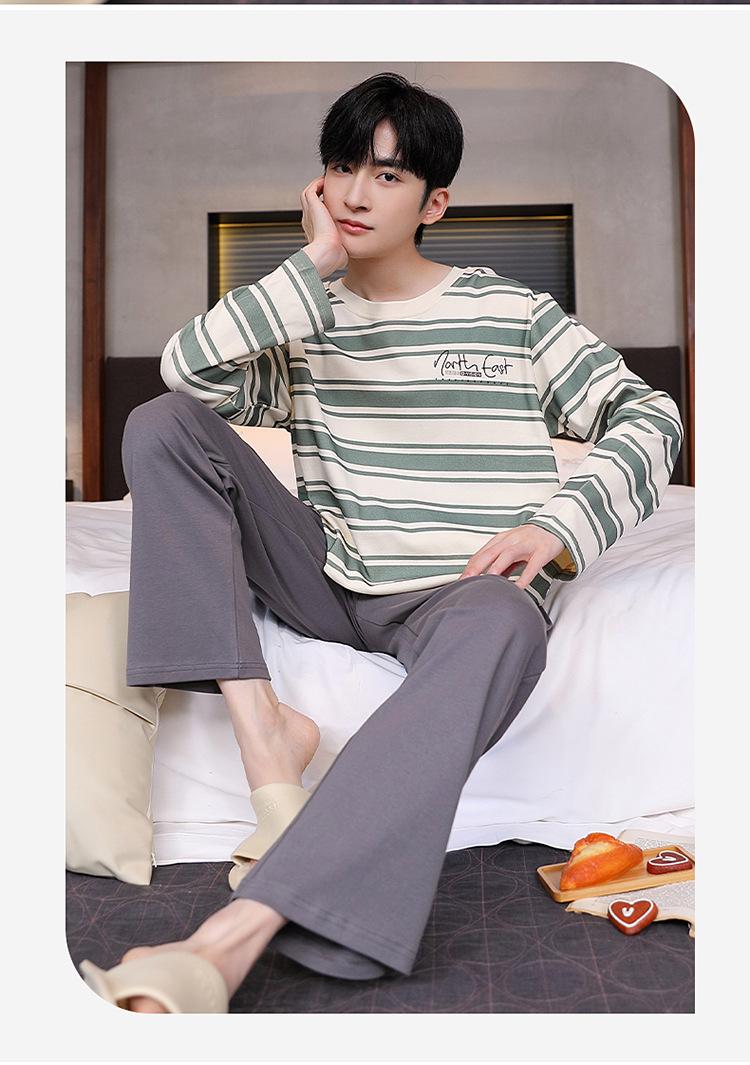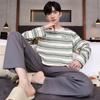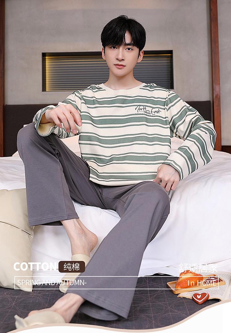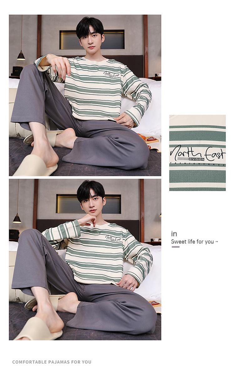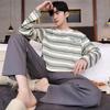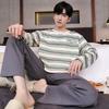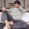 Pijamas de manga larga a rayas de moda para hombre, primavera y otoño, nuevos, de algodón puro, para jóvenes, traje sencillo para otoño e invierno, ropa de hogar de algodón puro.