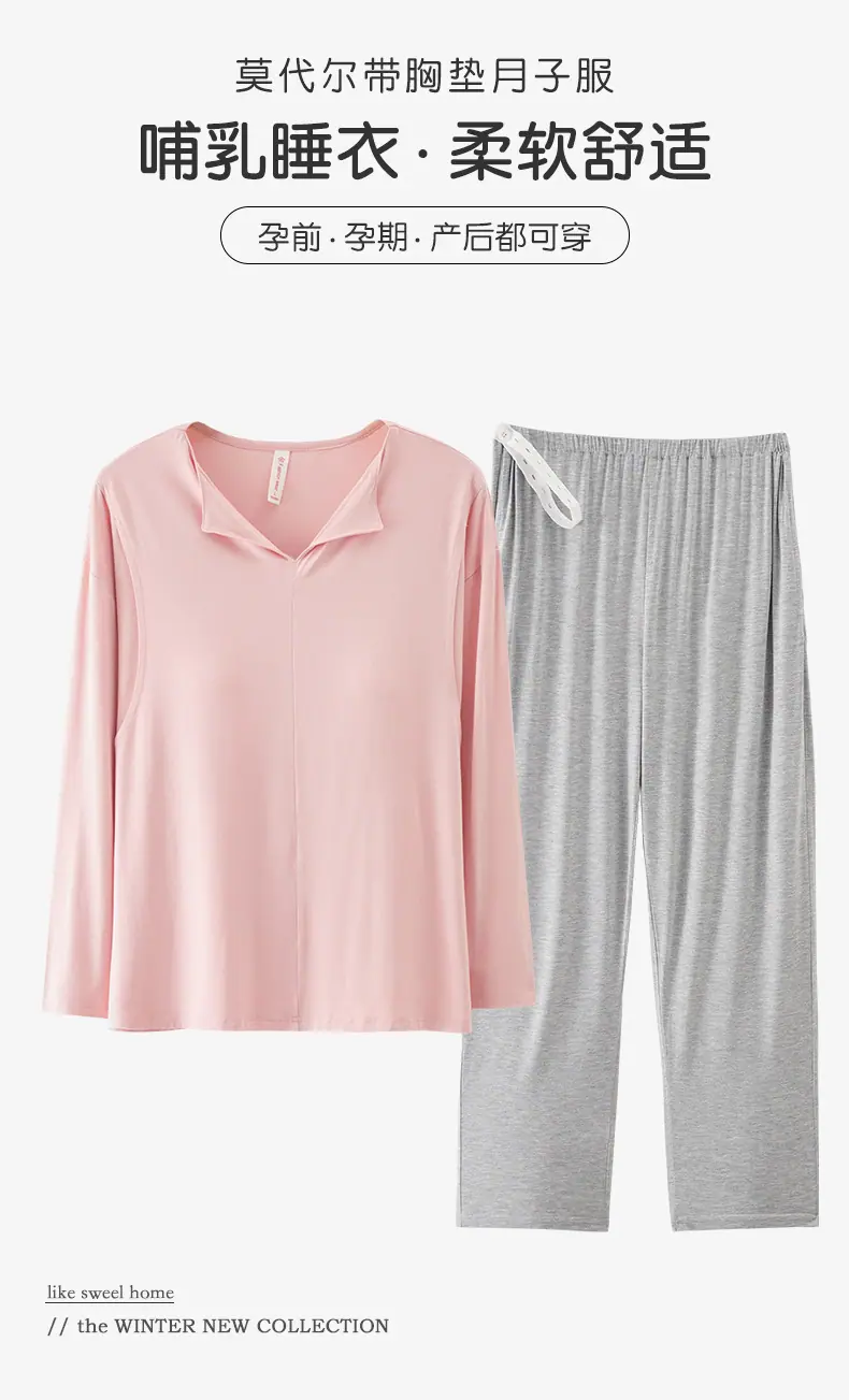 Ropa Autumn Moon con Almohadilla en el Pecho Pijama de Modal para Postparto para Mujeres Embarazadas Ropa de Lactancia para Mujeres Embarazadas Ropa para Hogar Primavera y Verano
