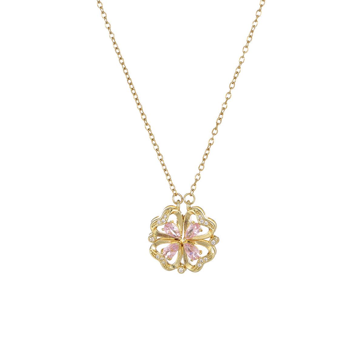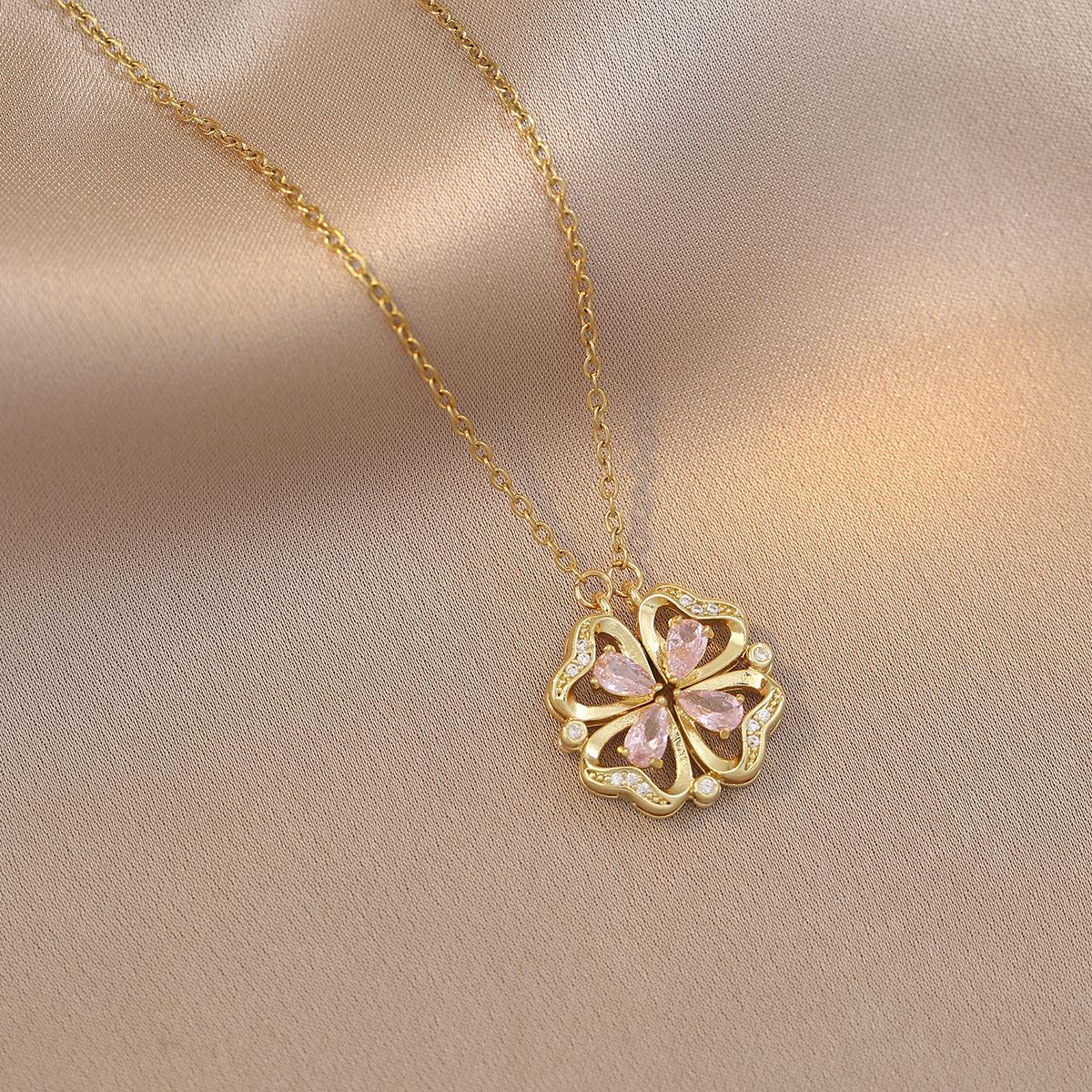 Collar de Acero de Titanio para Mujer Nuevo Estilo de Una Pieza Dos Usos Abrible Collar de Flor de Cuatro Hojas Moda Corazón de Amor Plegable Cadena Clavícula Joyería