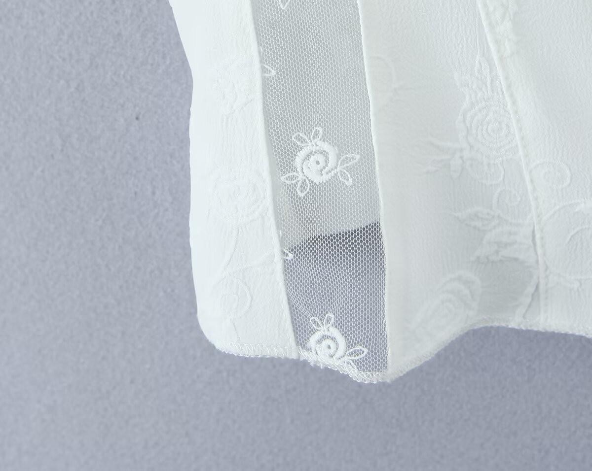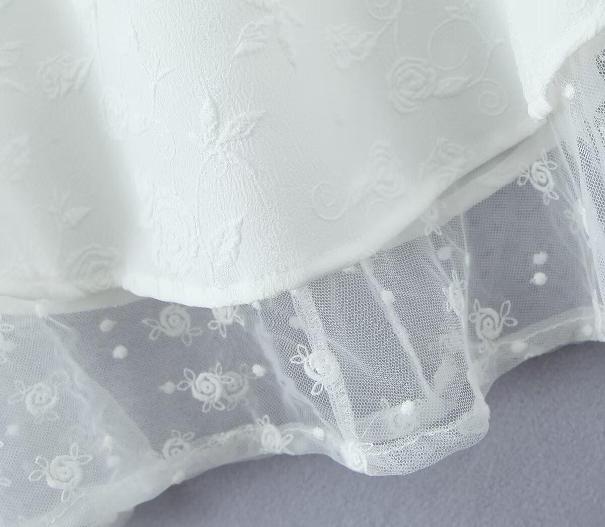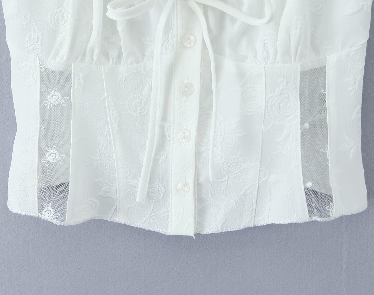 Francés Sexy Malla Empalmada Lazo en Relieve Pequeño Camisola + Falda Cintura Alta Falda Larga Traje