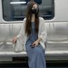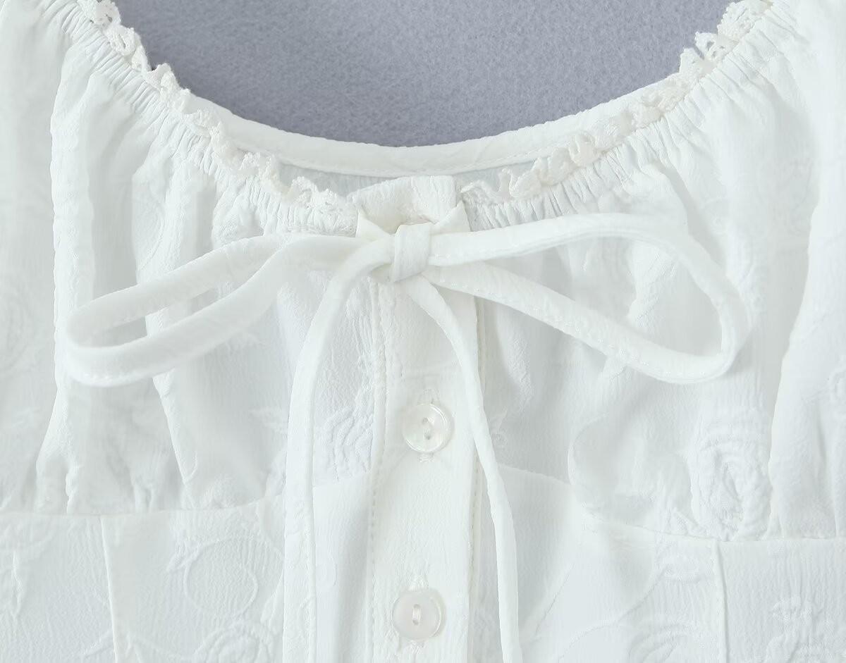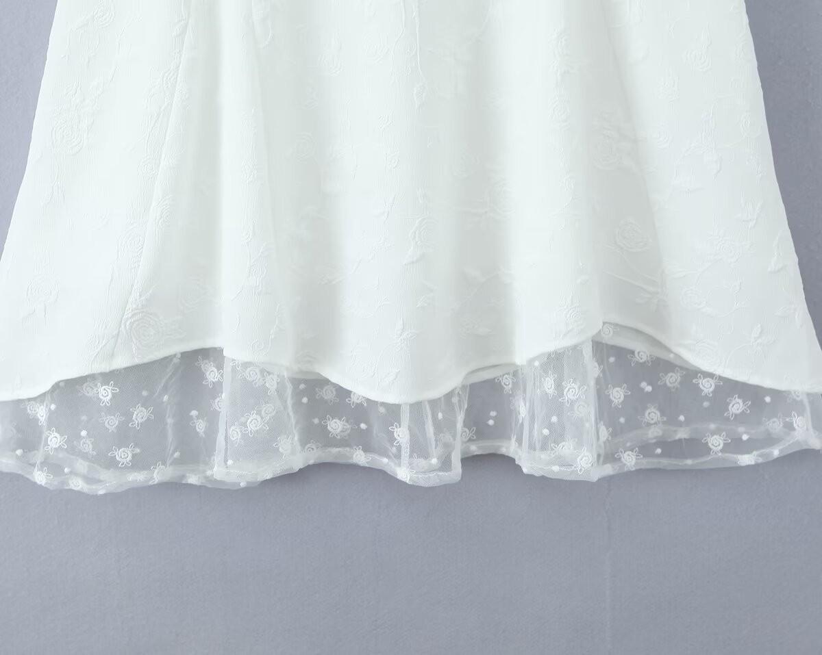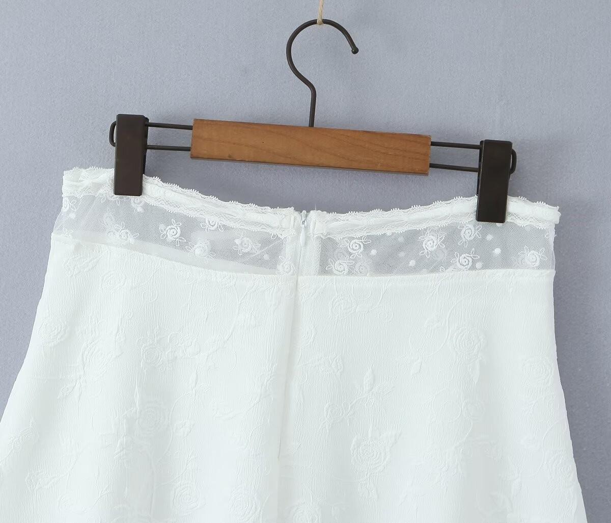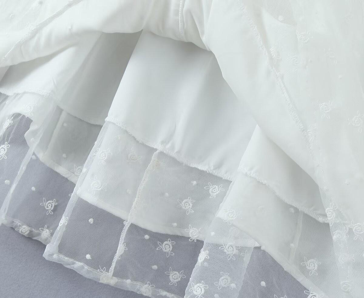 Francés Sexy Malla Empalmada Lazo en Relieve Pequeño Camisola + Falda Cintura Alta Falda Larga Traje