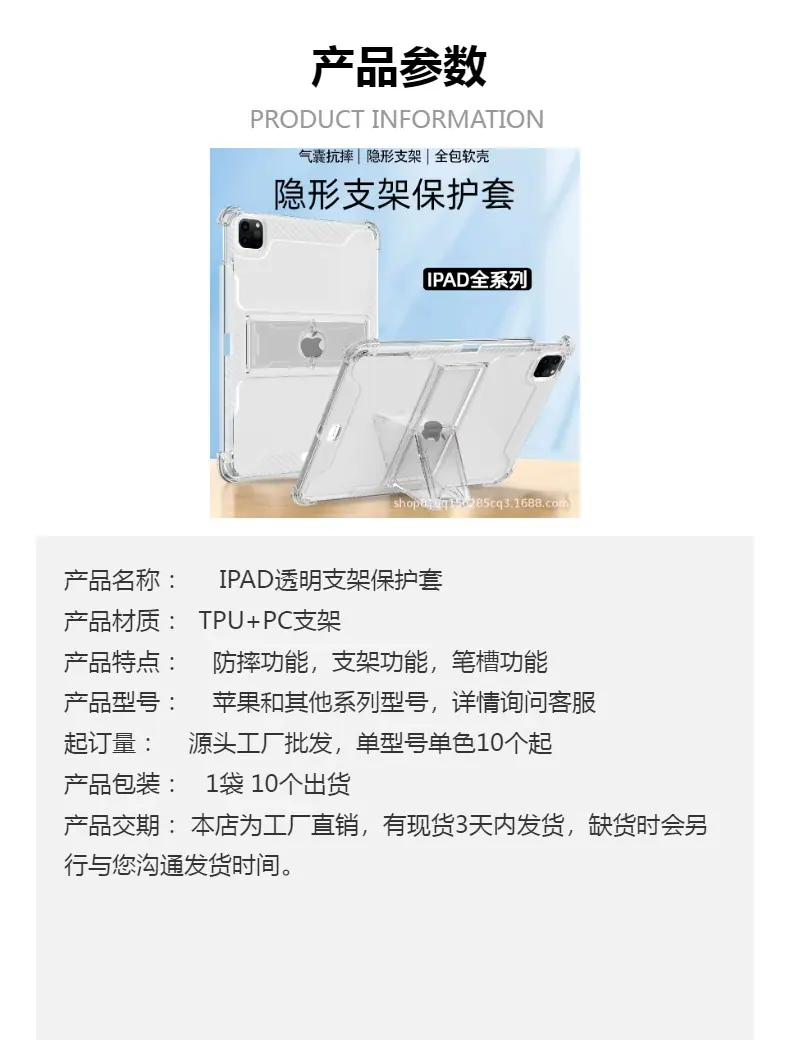 Adecuado para Funda Protectora para Tablet Ipad11 Generación con Soporte Ranura para Lápiz Apple Air13 Carcasa Blanda Air6 Funda Protectora Transparente