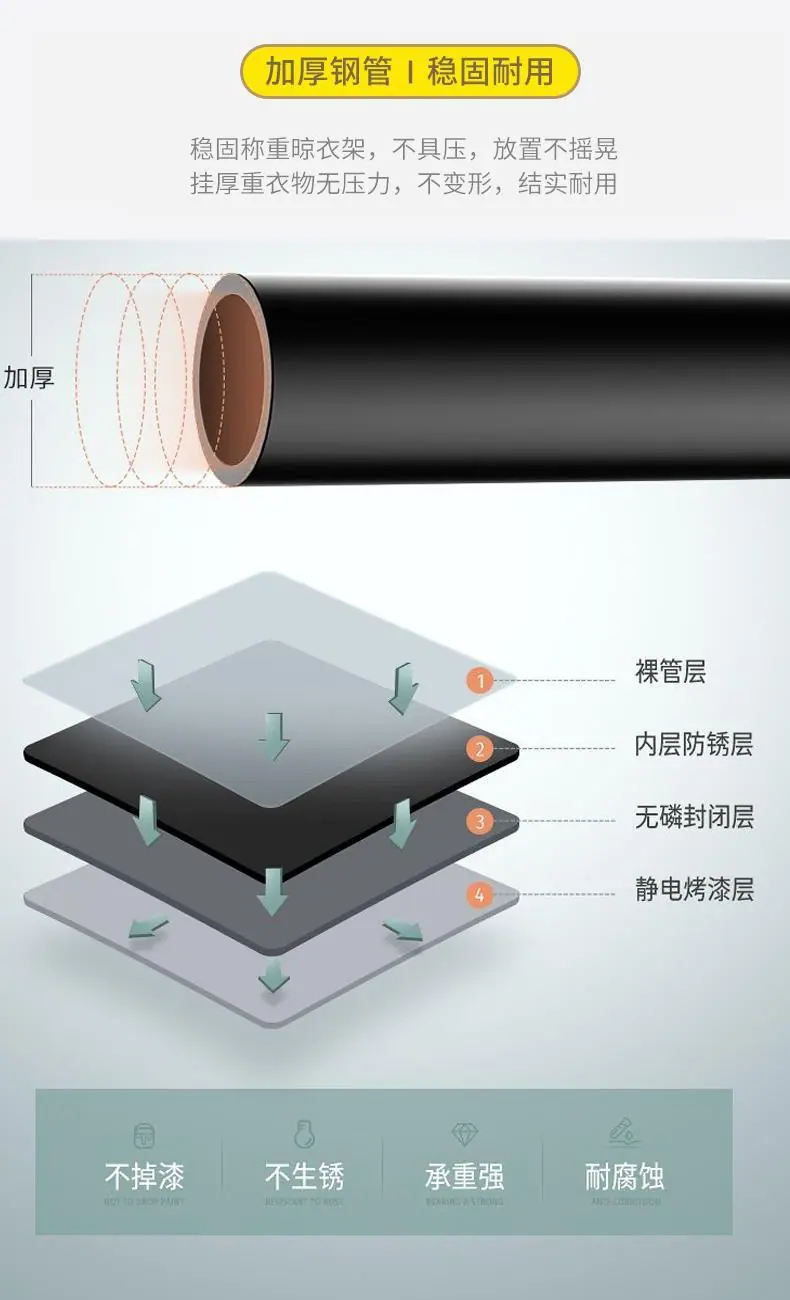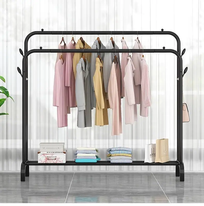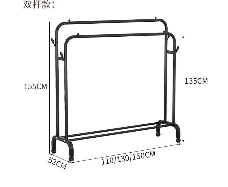 Black - enhanced double pole 110cm + coat hook + 4 wheels