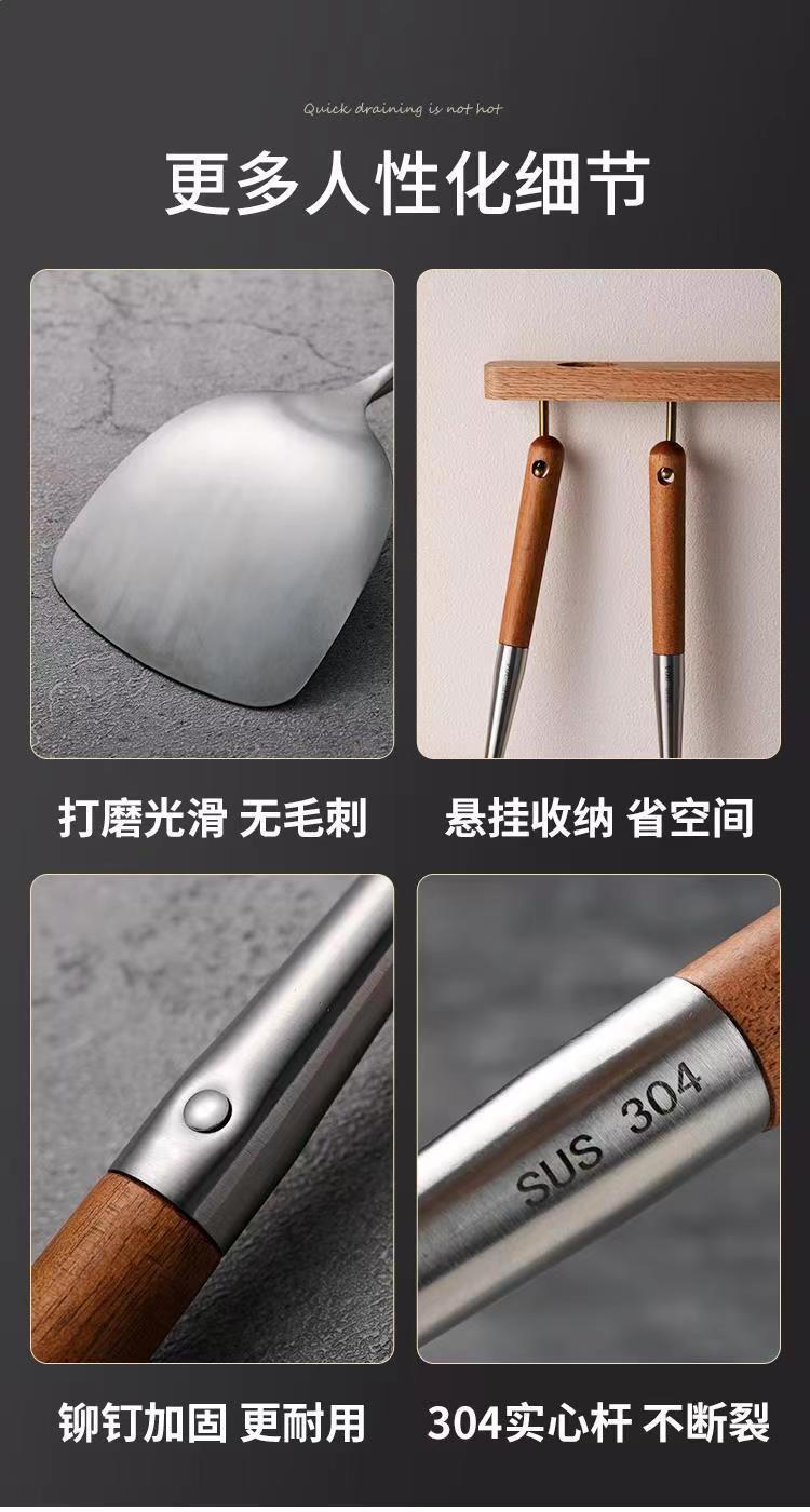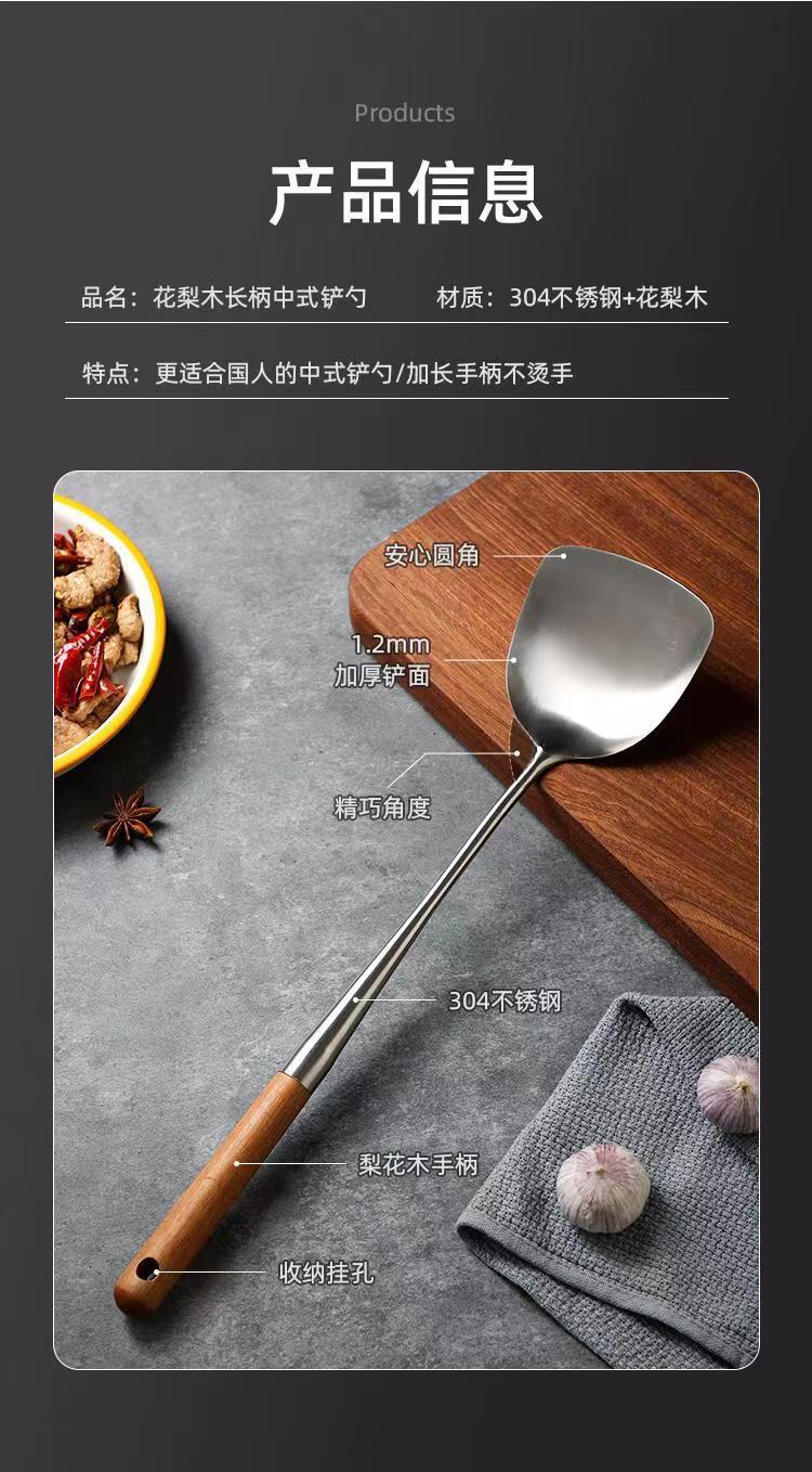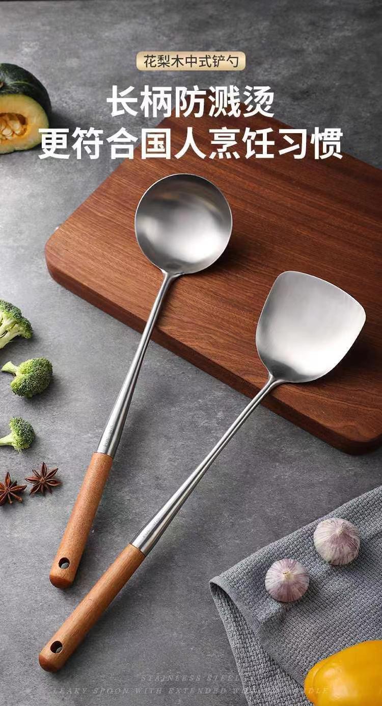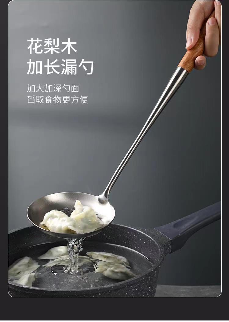 304 Rosewood extended spatula, 304 Rosewood lengthened spoon, 304 Rosewood lengthened colander, 304 Rosewood l...