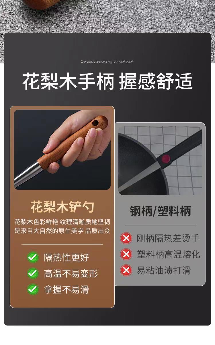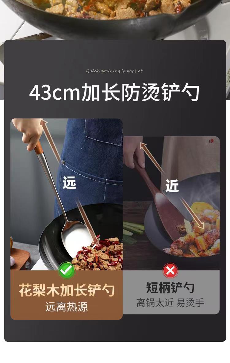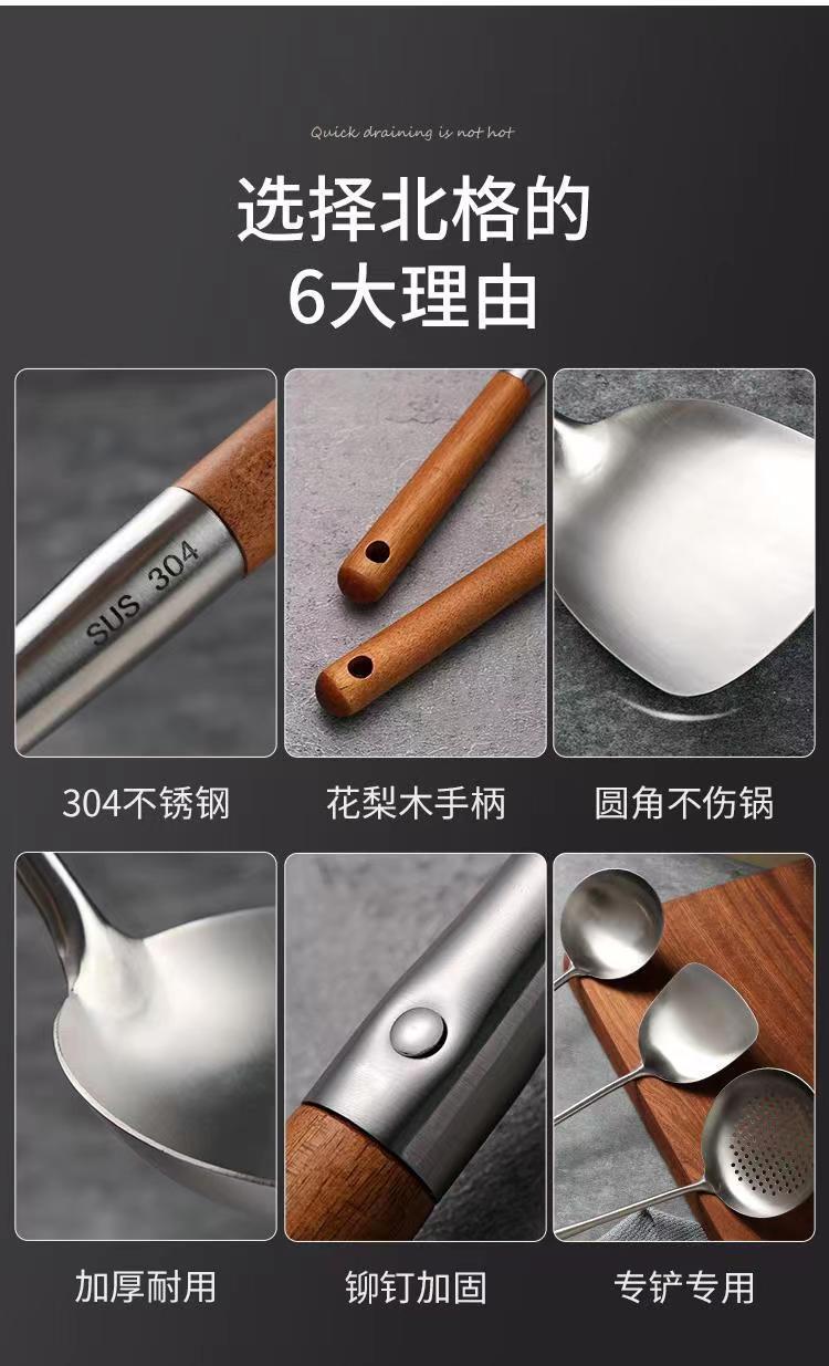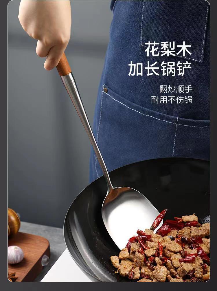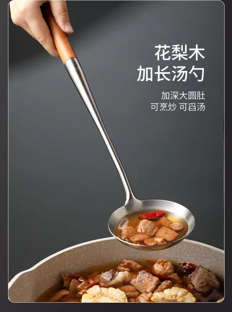 304 Rosewood extended spatula, 304 Rosewood lengthened spoon, 304 Rosewood lengthened colander, 304 Rosewood l...