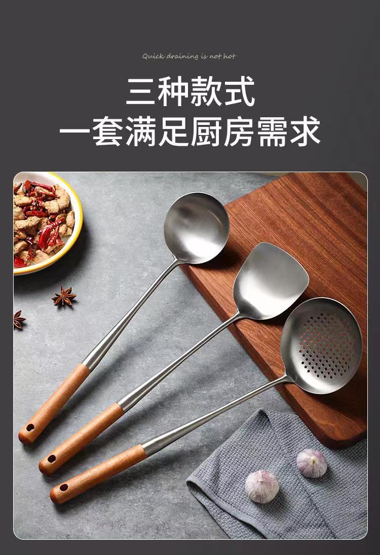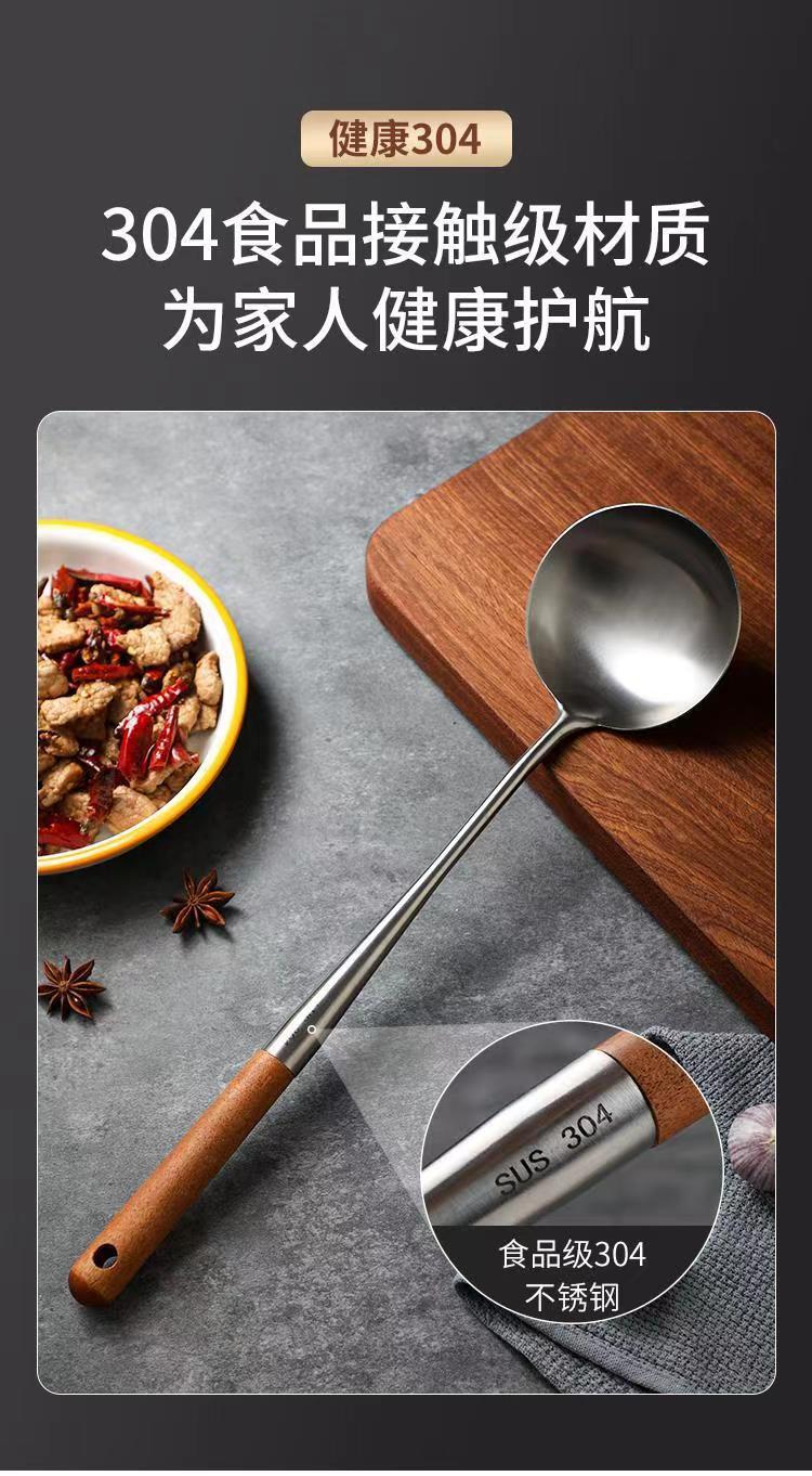 Aislamiento térmico antiquemaduras espátula de acero inoxidable 304 cuchara para sopa espátula para cocinar mango de madera hogar mango largo cuchara para sopa cuchara para verduras cuchara para olla