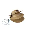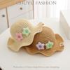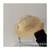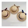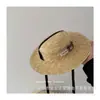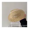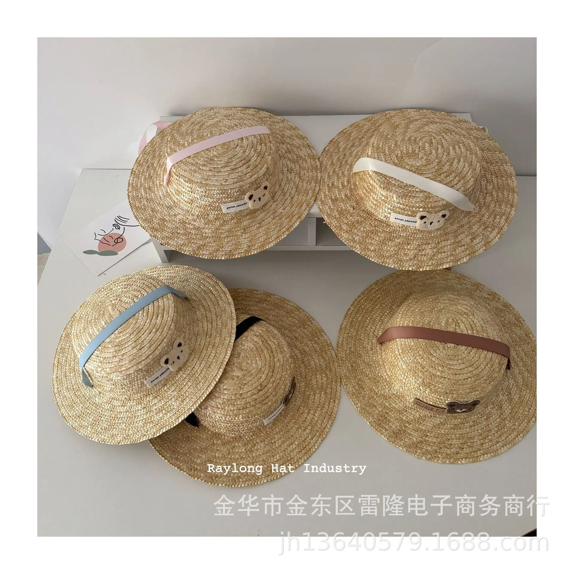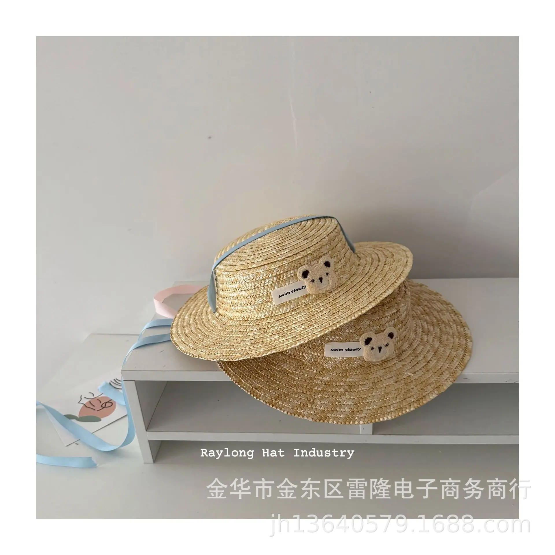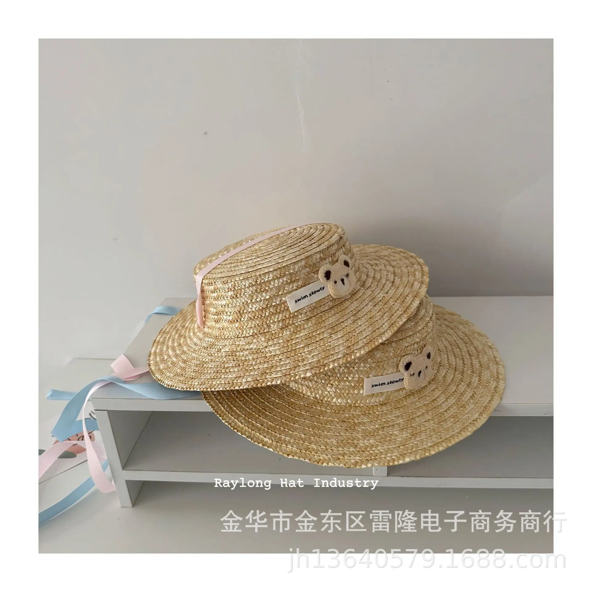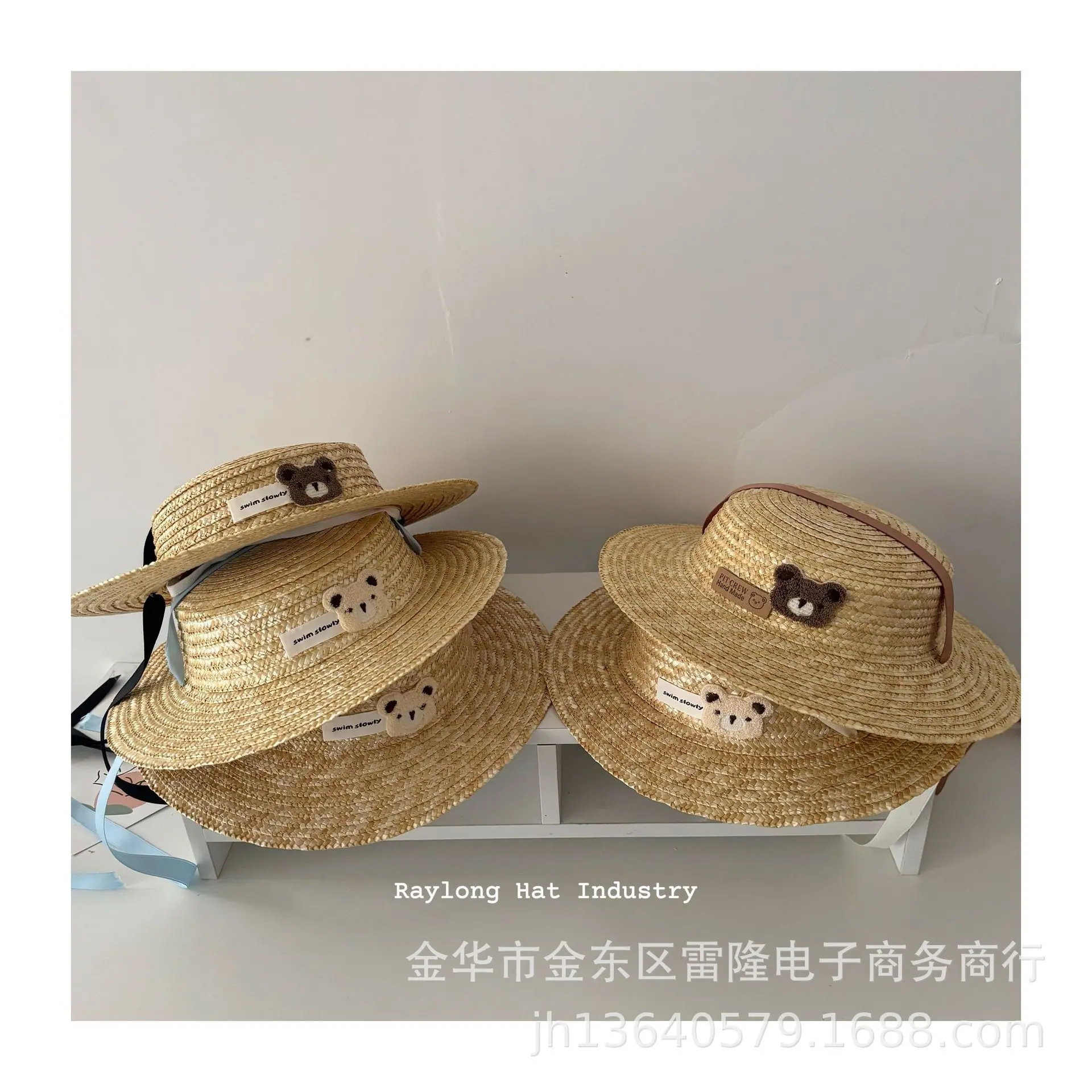Sombrero de Paja de Ala Plana Hecho a Mano para Niños al Estilo Coreano con Cinta, Sombrero de Cubo de Oso para Protección Solar de Verano