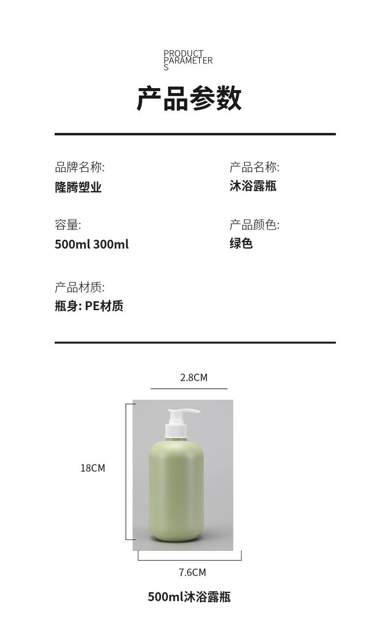 Botella de Gel de Ducha de 500 ml Tipo Push Loción Corporal Botella de Desinfectante de Manos Botella Vacía de Plástico Verde Neto para Íntimos de 500 ml