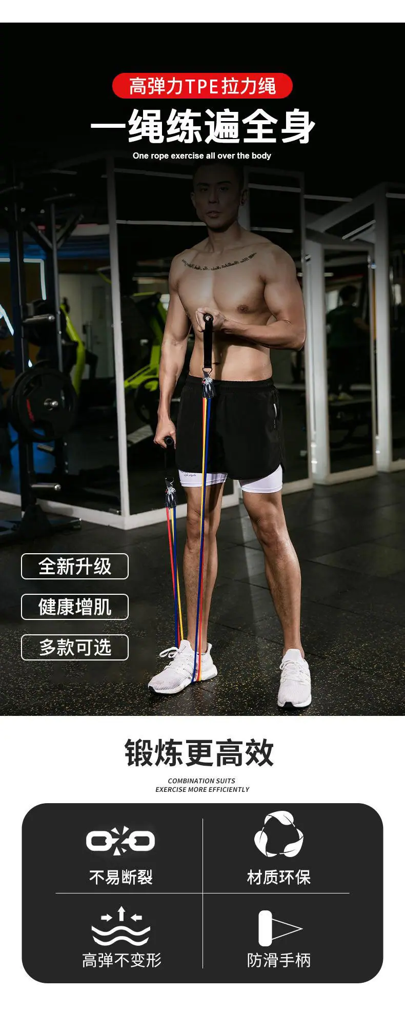 Juego de Bandas de Resistencia Multifuncionales de TPE de 11 piezas Tubos de Resistencia para Fitness Entrenamiento de Cuerpo Completo Cuerdas Elásticas Bandas de Resistencia para Moldeado