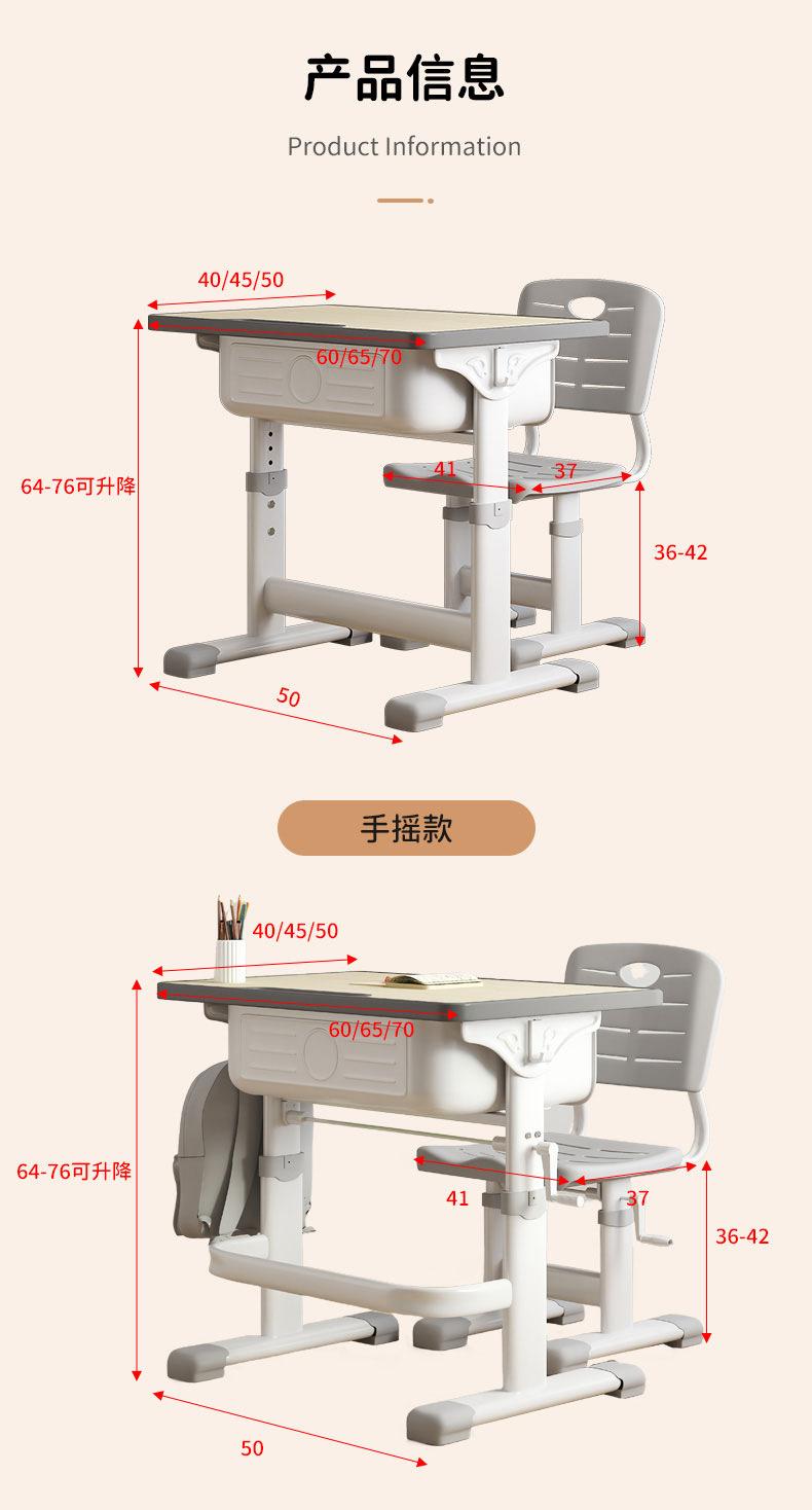Escritorio sin instalación Mesa de estudio para niños Elevable Escritorio para estudiantes de primaria Juego simple de escritorio y silla para niños