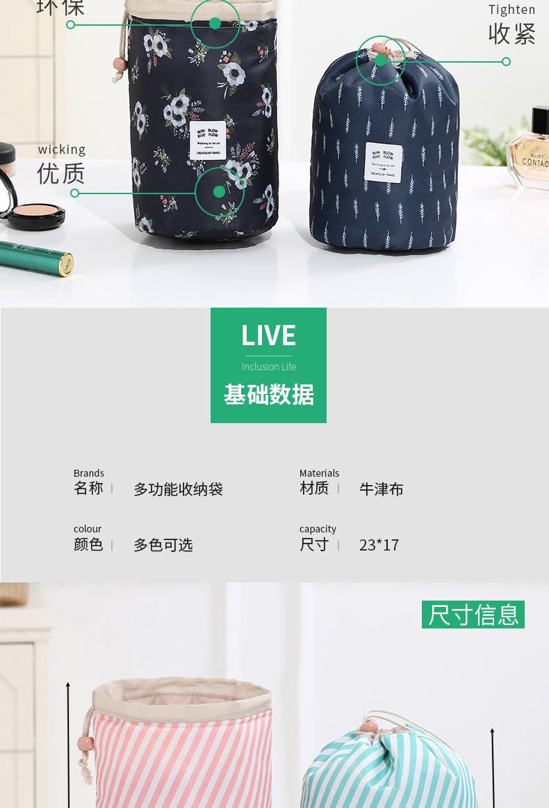 Nueva Bolsa de Cosméticos de Viaje de Tela Oxford, Bolsa de Cosméticos Cilíndrica Colorida, Bolsa de Cosméticos con Cordón Ajustable, Bolsa de Cosméticos