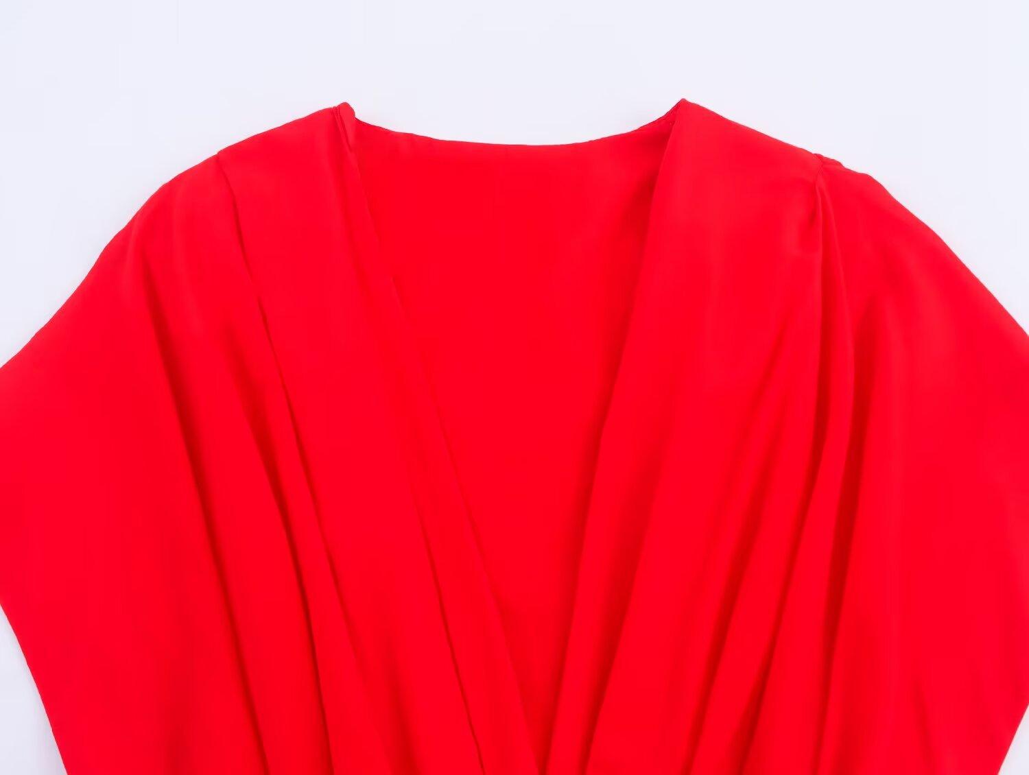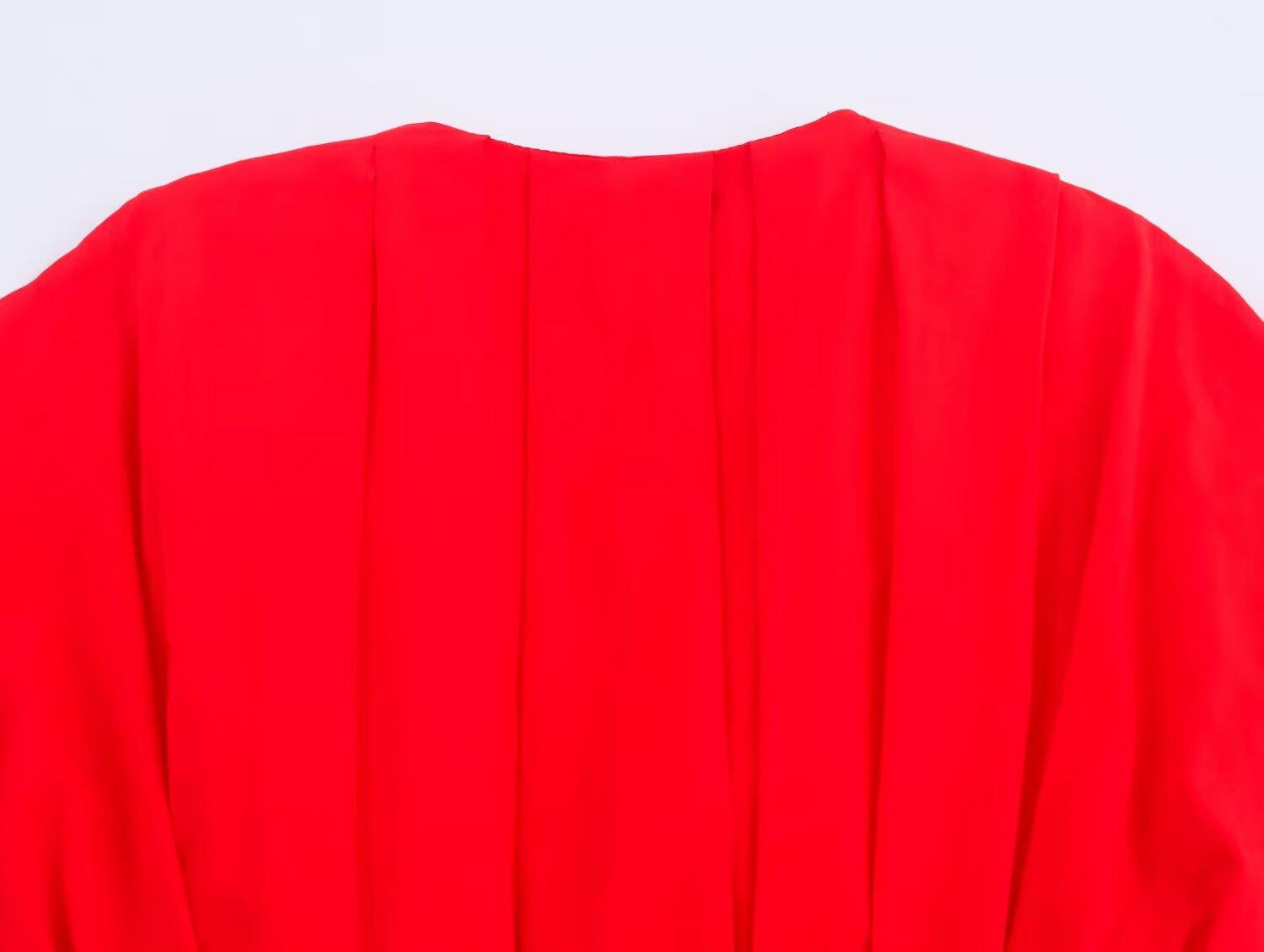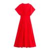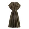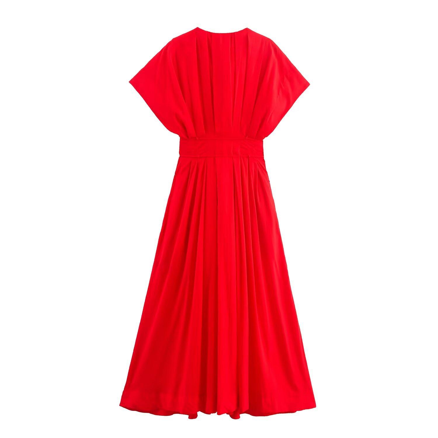 2025 Verano Nuevo Ropa de Mujer Transfronteriza Europea y Americana Temperamento Moda Cuello en V Vestido Midi Plisado w103 8879