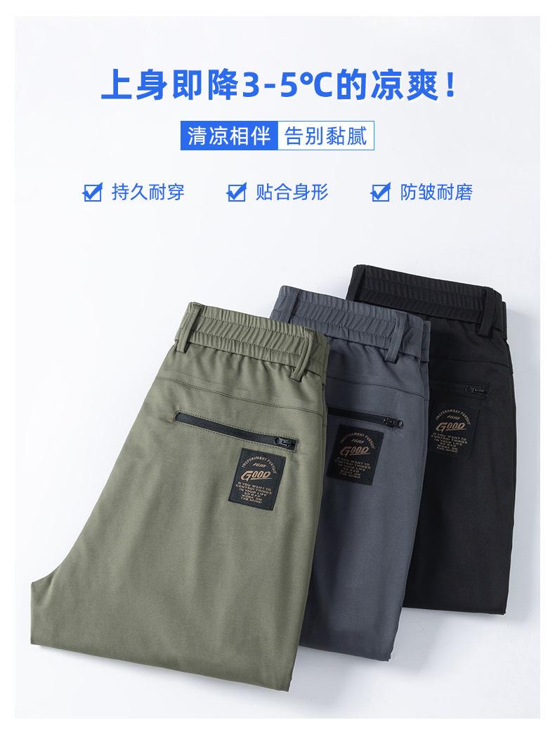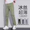 2025 Pantalones Casuales Holgados de Negocios Nuevos de Pierna Recta Cintura Elástica Pantalones Largos Transpirables de Seda Helada Pantalones de Traje Pantalones Delgados de Moda