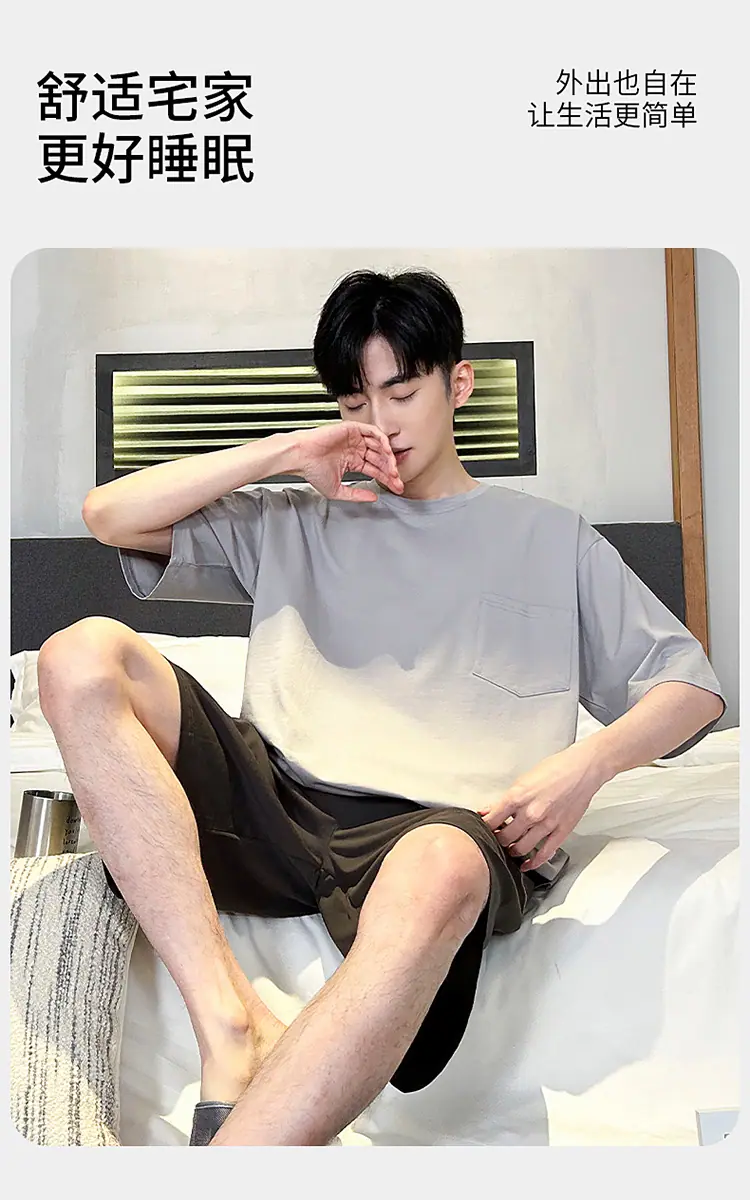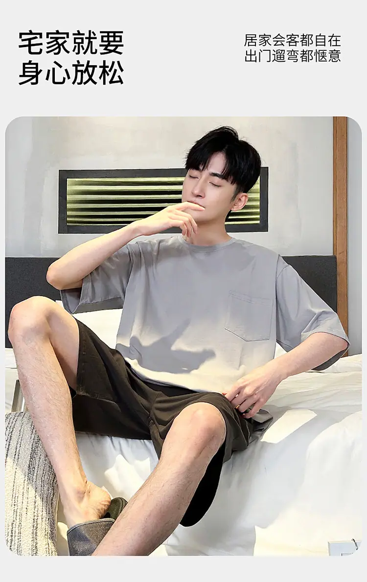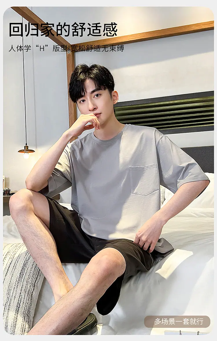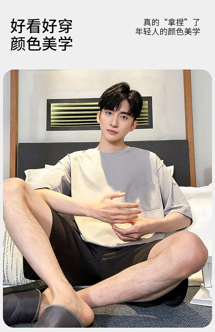 Pijama para Hombre Verano Nuevo Algodón Manga Corta Shorts Ropa para el Hogar Traje Casual de Verano para Hombre