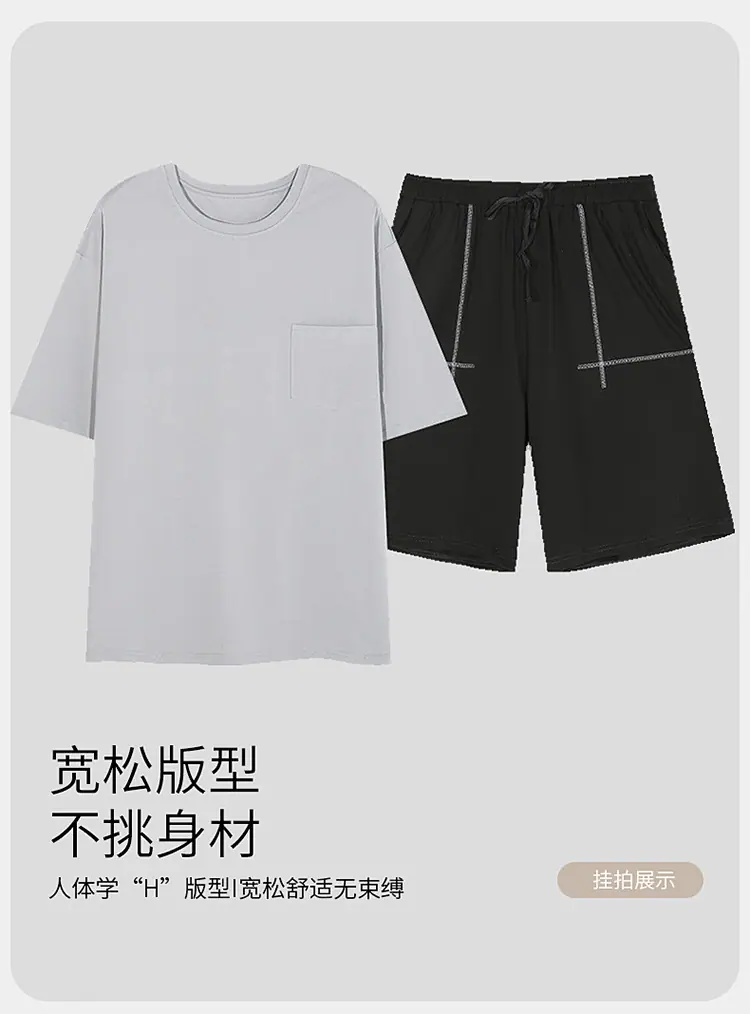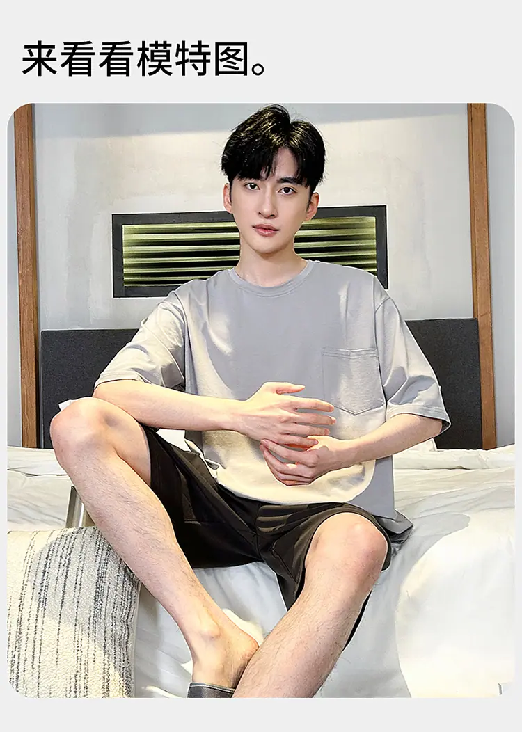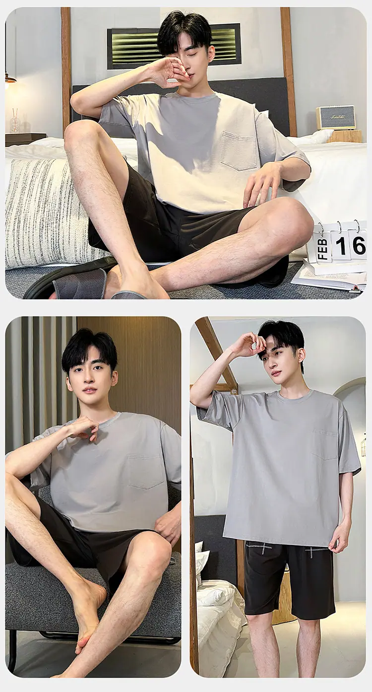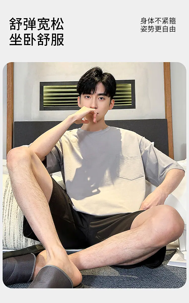 Pijama para Hombre Verano Nuevo Algodón Manga Corta Shorts Ropa para el Hogar Traje Casual de Verano para Hombre