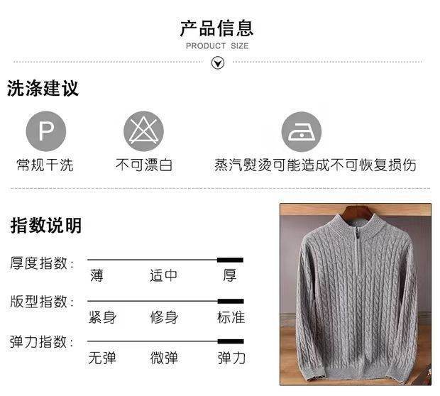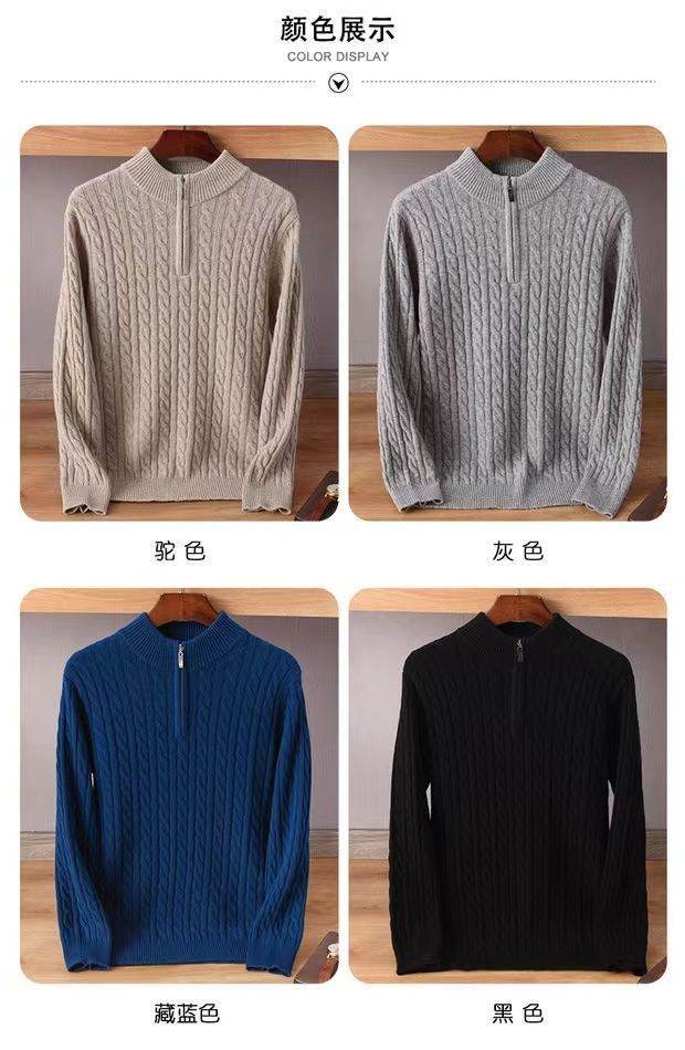 Compra Amazon Transfronterizo Nuevo Suéter de Hombre Grueso Trenzado Cremallera Medio Cuello Alto Cálido Suéter Camiseta Base de Punto para Hombre al por mayor en Joom.pro