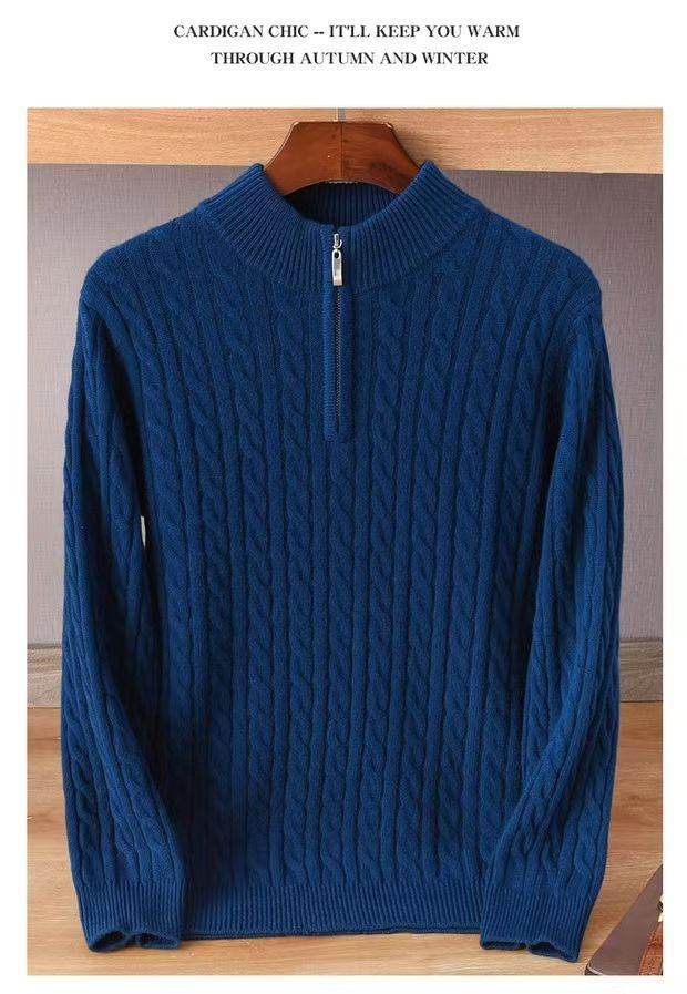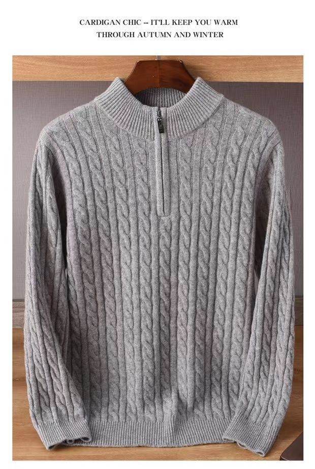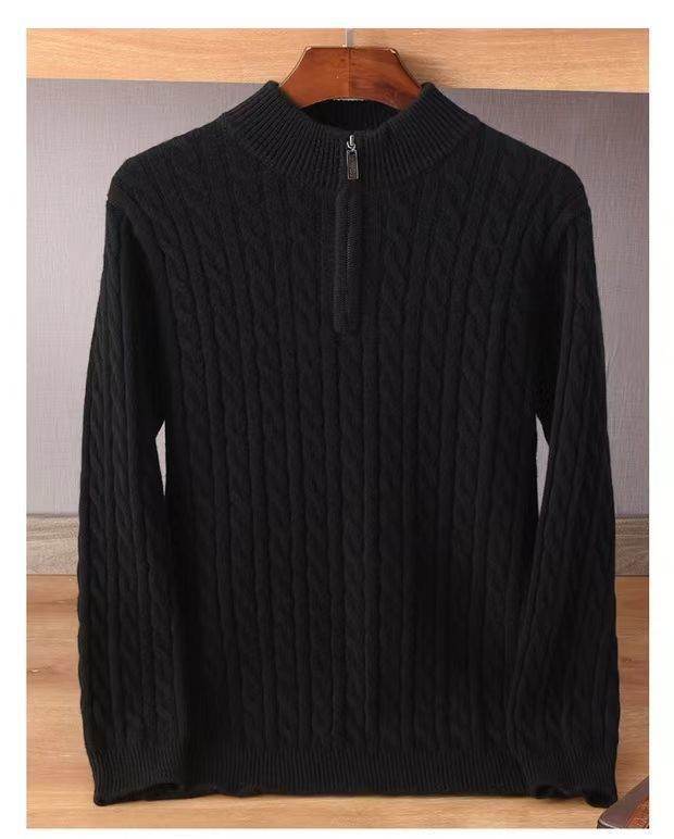 Amazon Transfronterizo Nuevo Suéter de Hombre Grueso Trenzado Cremallera Medio Cuello Alto Cálido Suéter Camiseta Base de Punto para Hombre