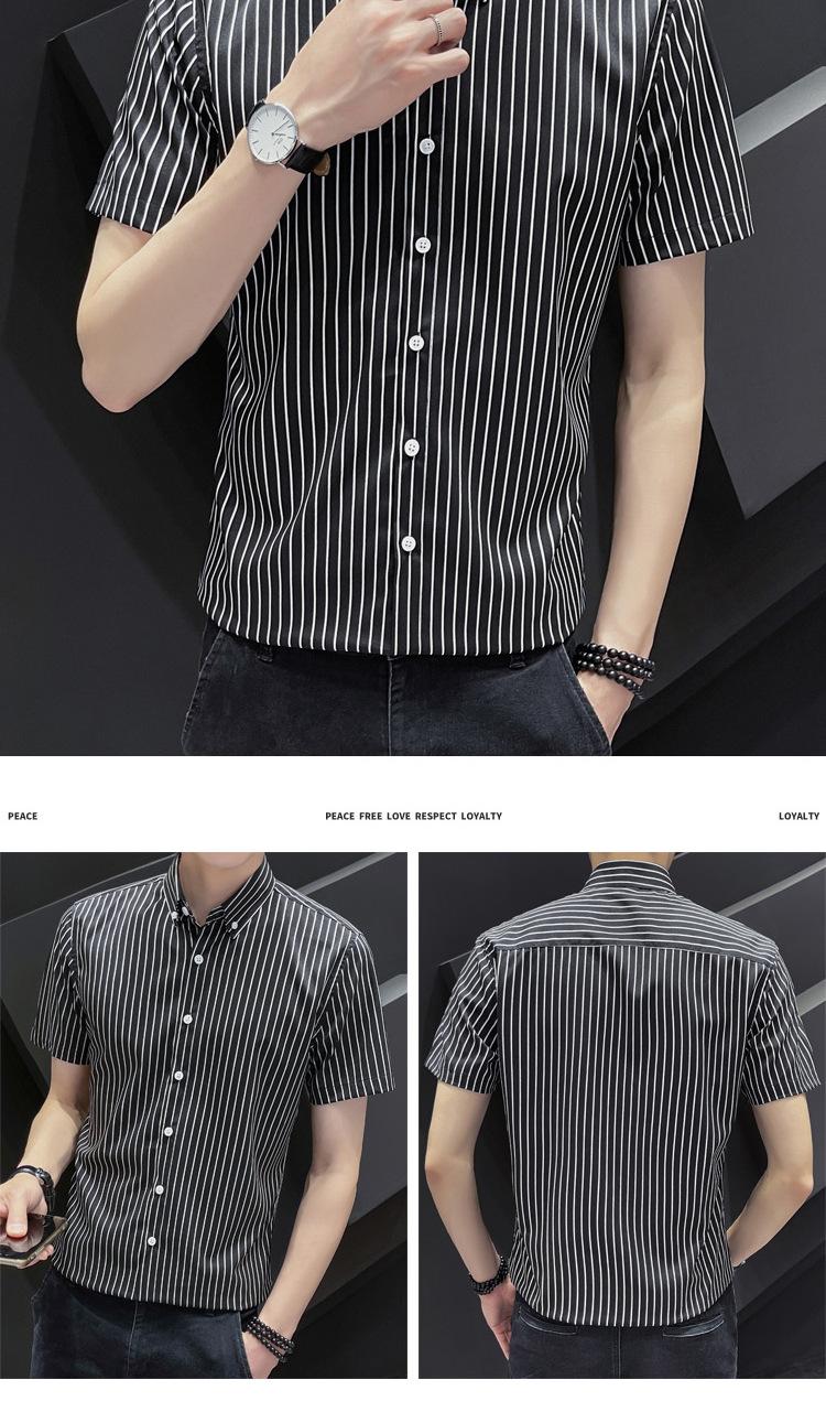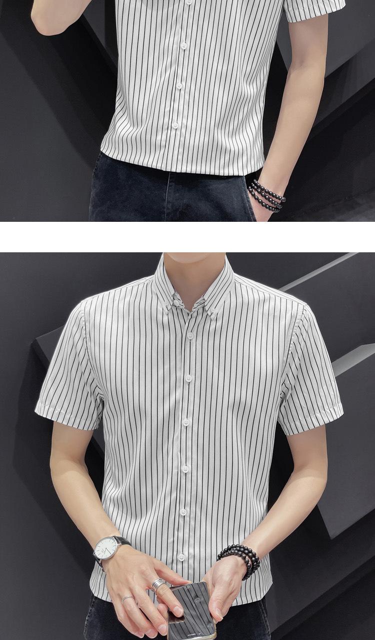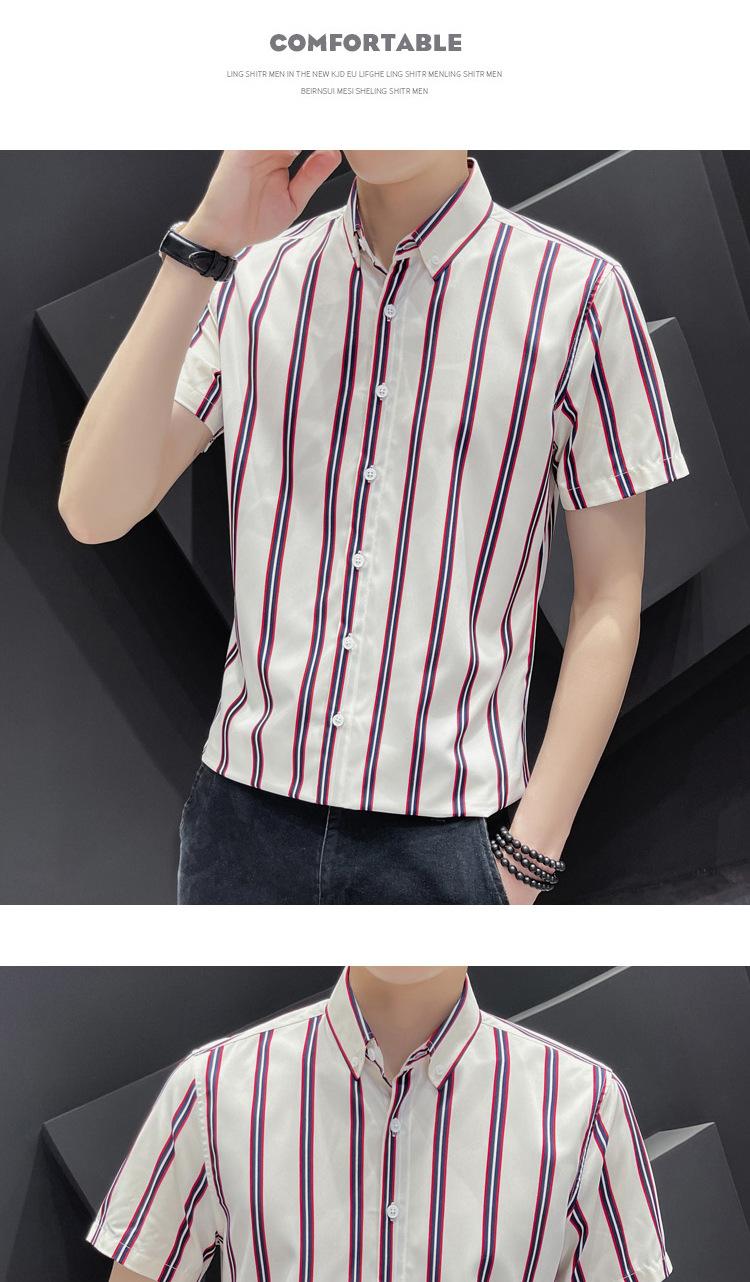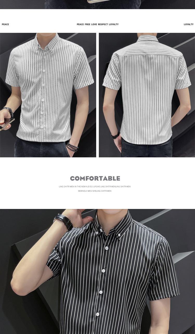 Camisa de Manga Corta para Hombre Nueva de Verano 2023 Camisa de Moda Casual de Negocios para Jóvenes de Estilo Coreano a Rayas Entallada