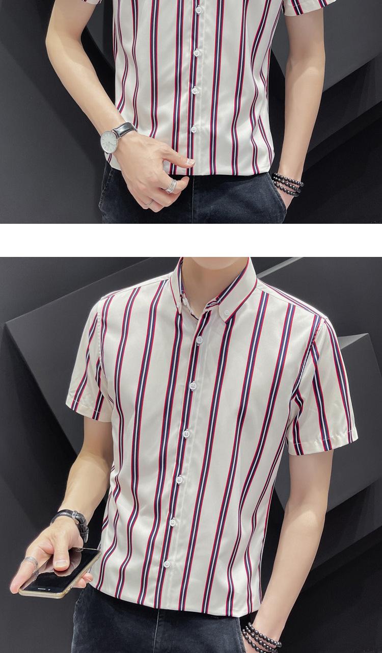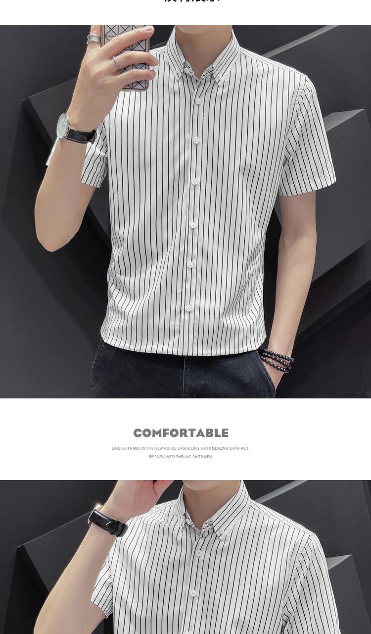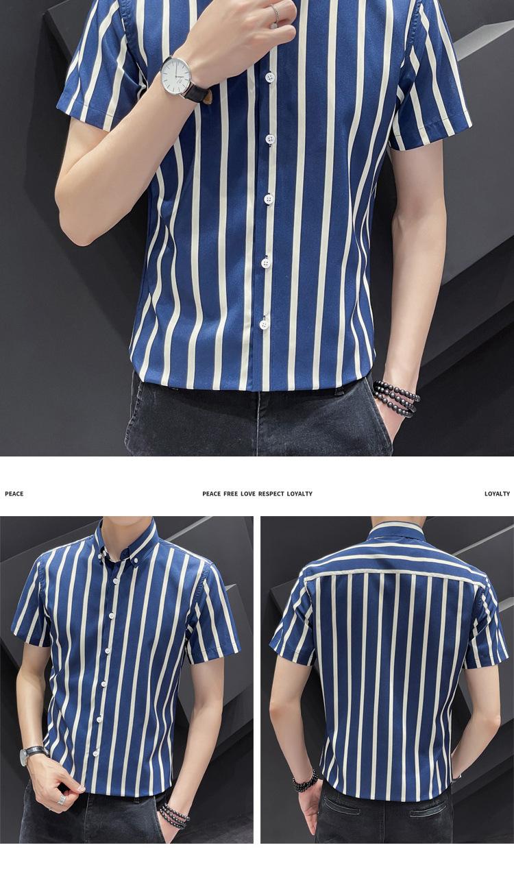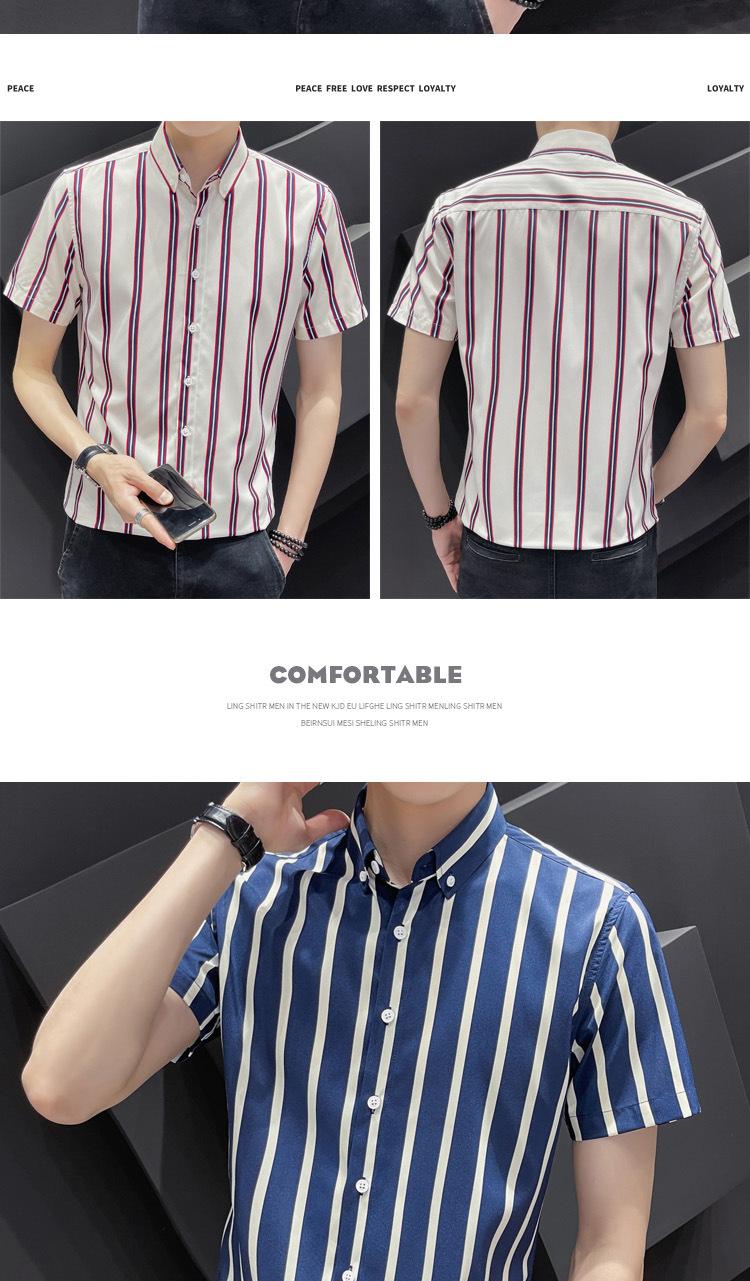 Camisa de Manga Corta para Hombre Nueva de Verano 2023 Camisa de Moda Casual de Negocios para Jóvenes de Estilo Coreano a Rayas Entallada