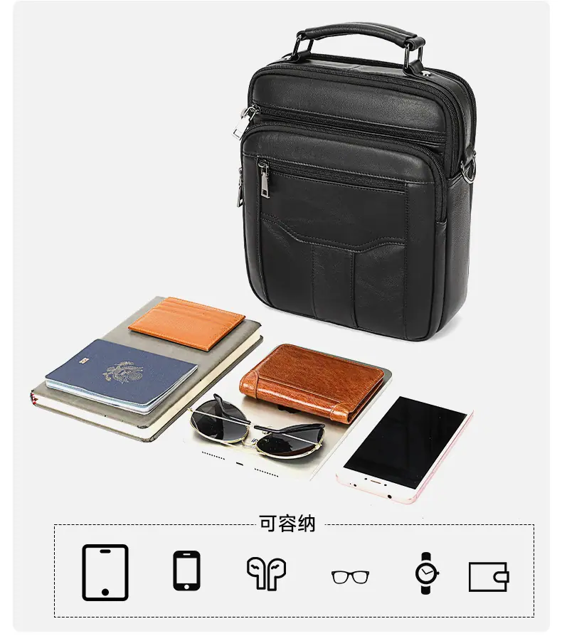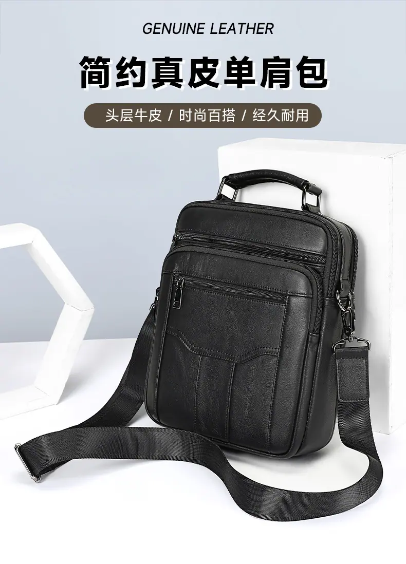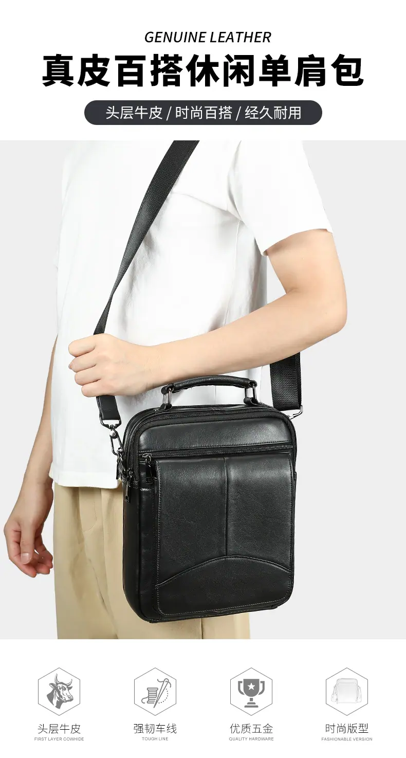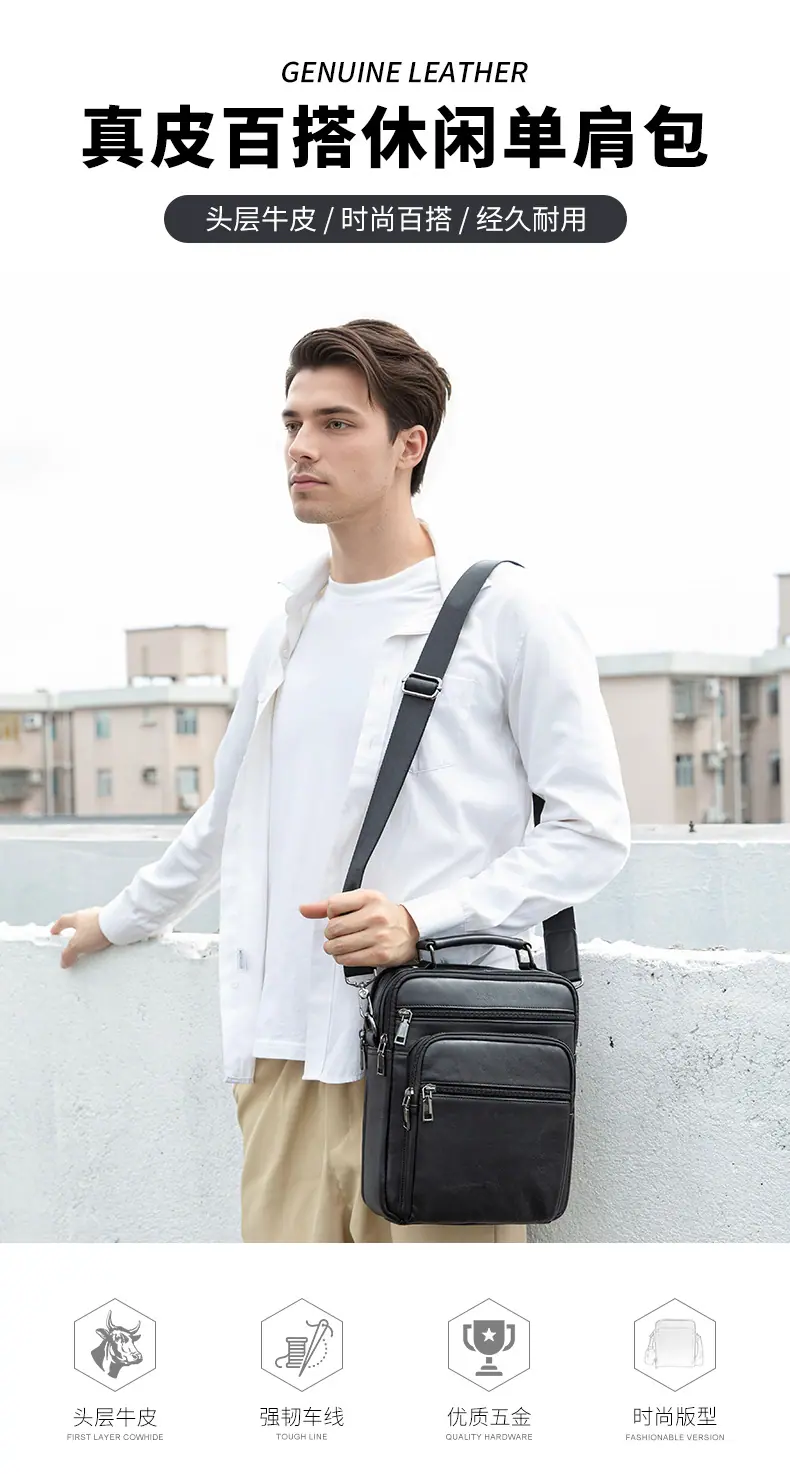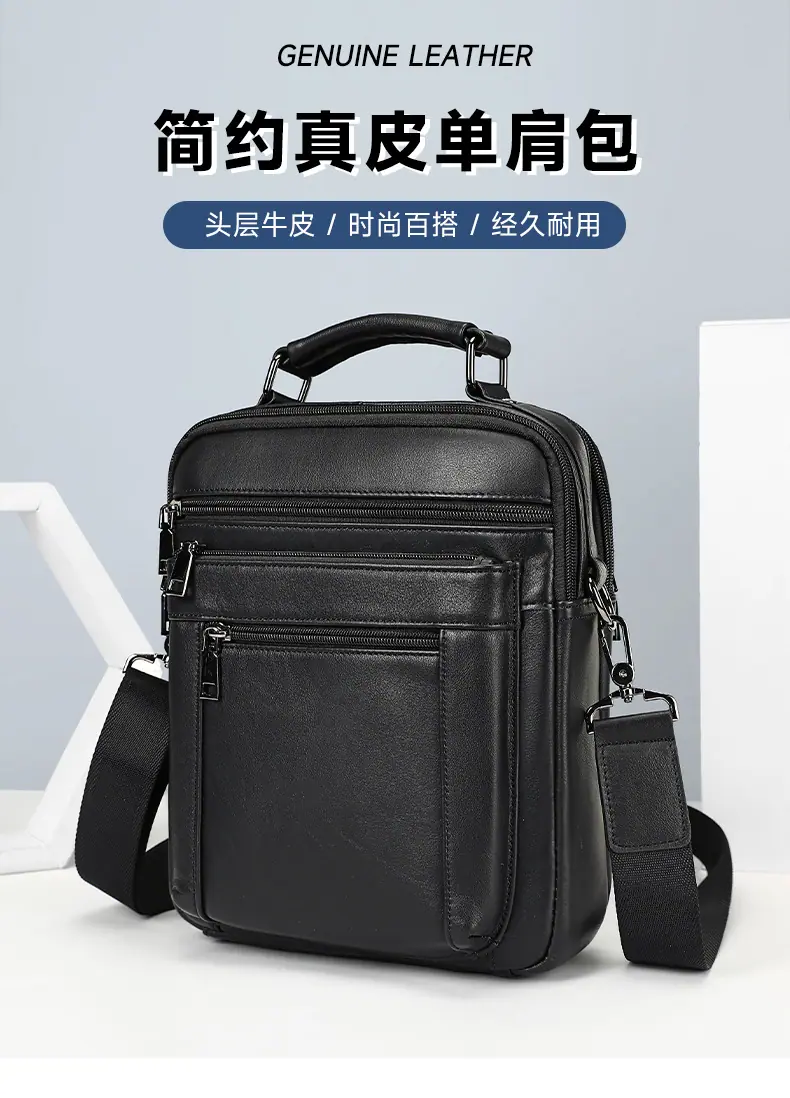 Bolso de hombro de piel de vaca de capa superior para hombre estilo comercio exterior de gran venta, bolso de mano casual de moda, bolso cruzado para viajes de negocios al por mayor