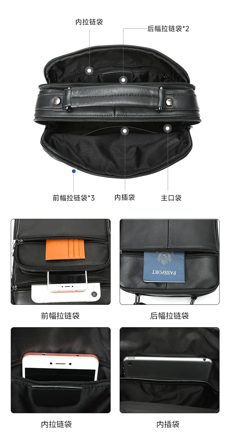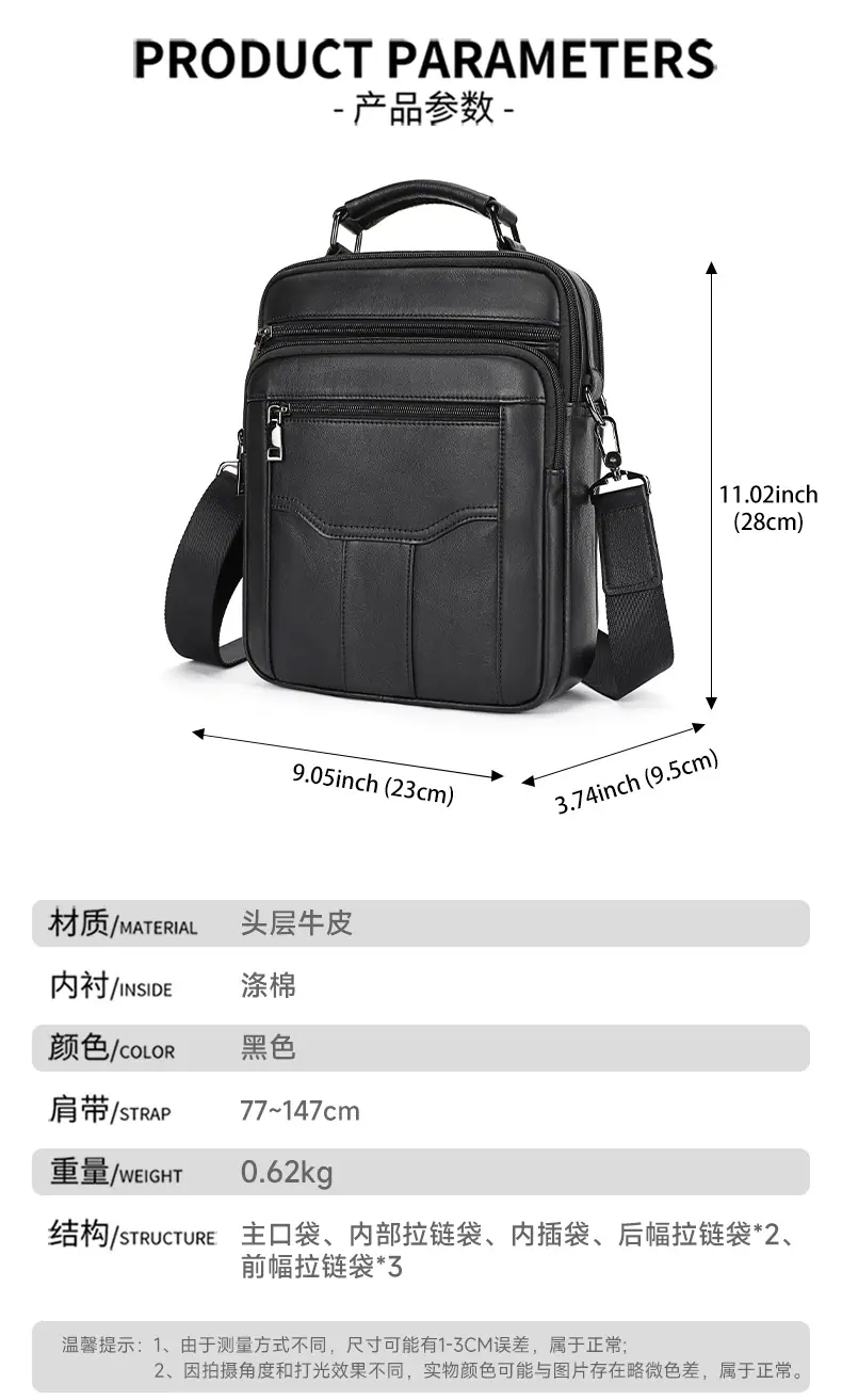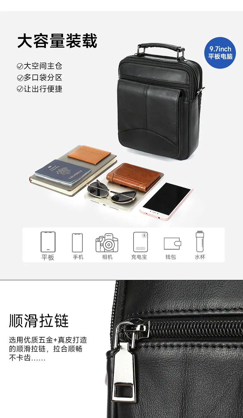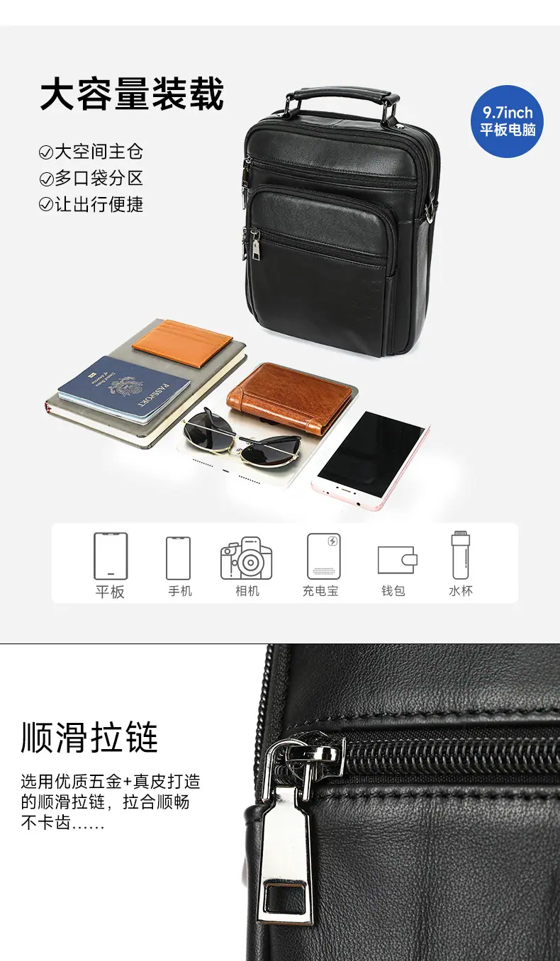 Bolso de hombro de piel de vaca de capa superior para hombre estilo comercio exterior de gran venta, bolso de mano casual de moda, bolso cruzado para viajes de negocios al por mayor