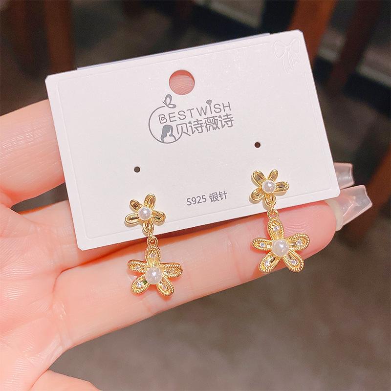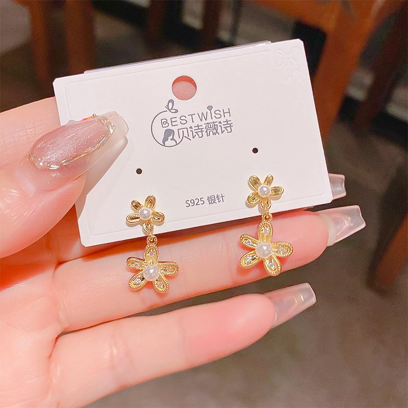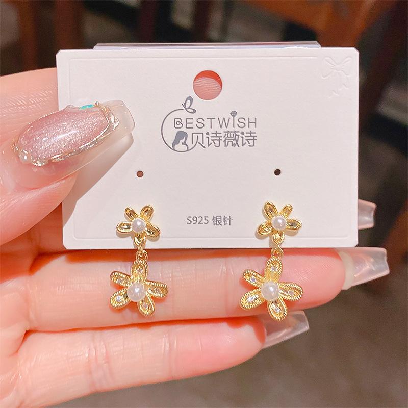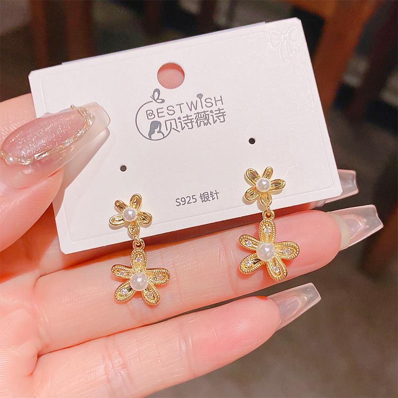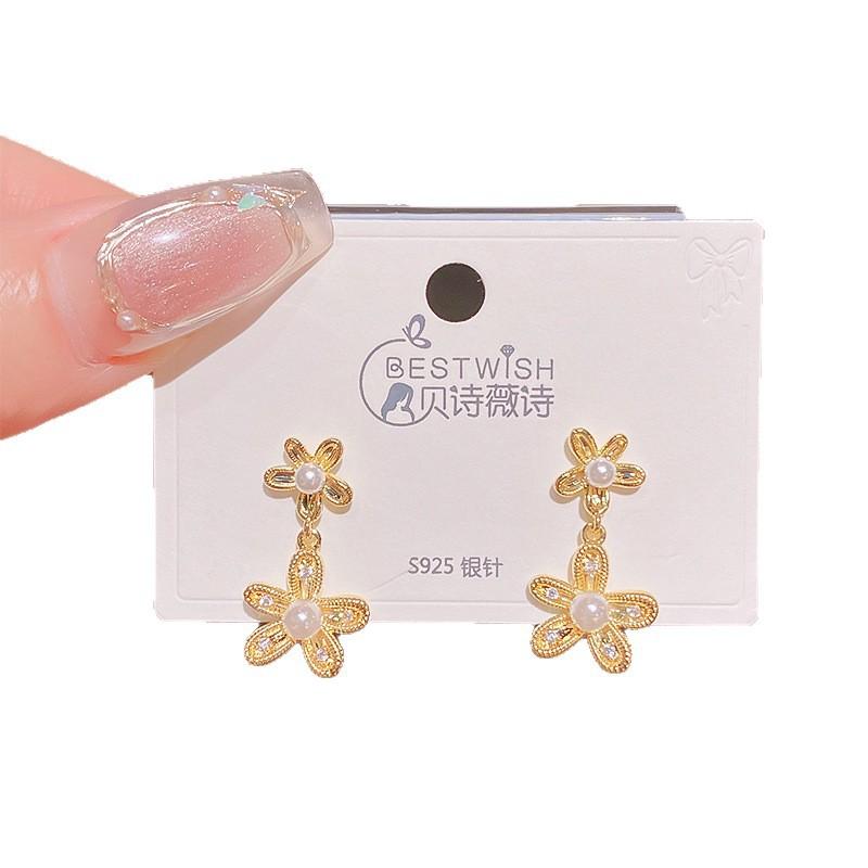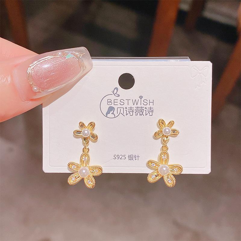 Nuevos Aretes de Tuerca con Borla de Flor de Perla de Diseño Minoritario para Mujer Aretes de Moda Exquisitos Retro Franceses Joyería para la Oreja