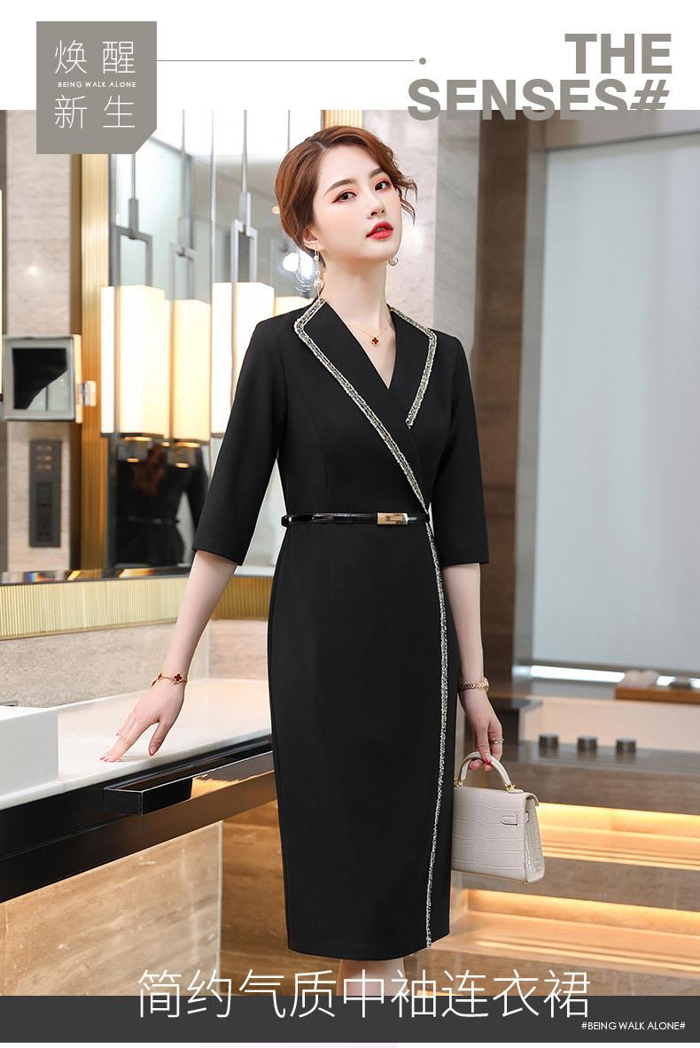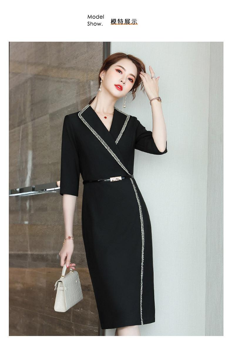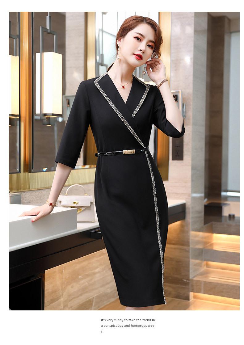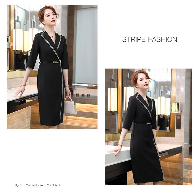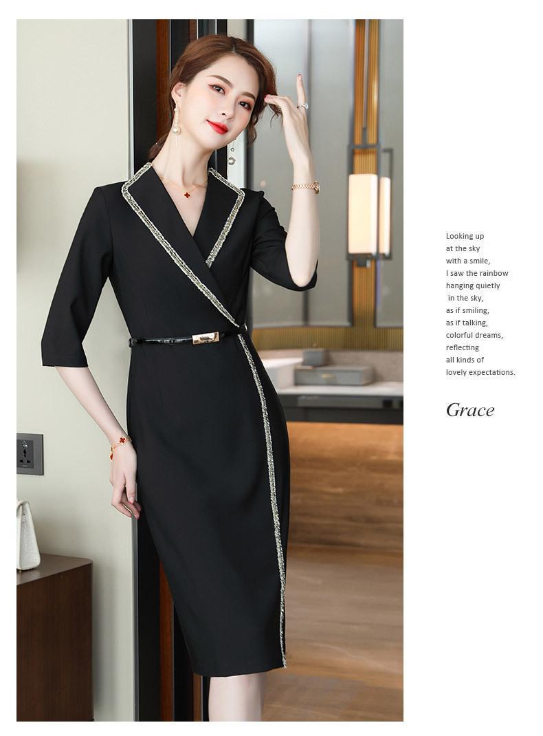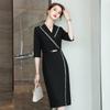 Compra Primavera Nuevo estilo coreano temperamento de moda vestido midi con cuello en V de cintura alta al por mayor en Joom.pro