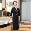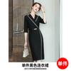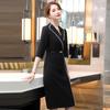 Primavera Nuevo estilo coreano temperamento de moda vestido midi con cuello en V de cintura alta