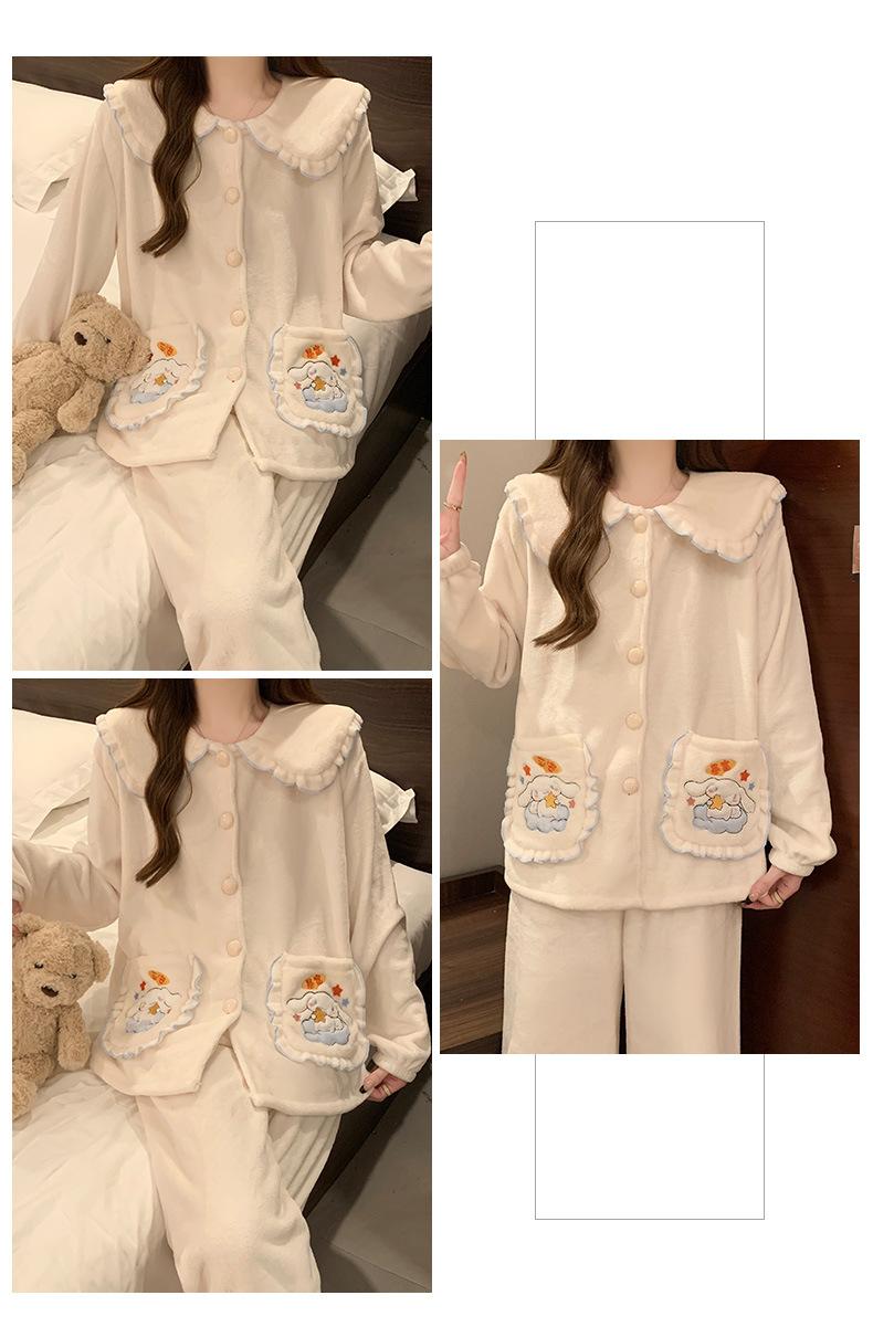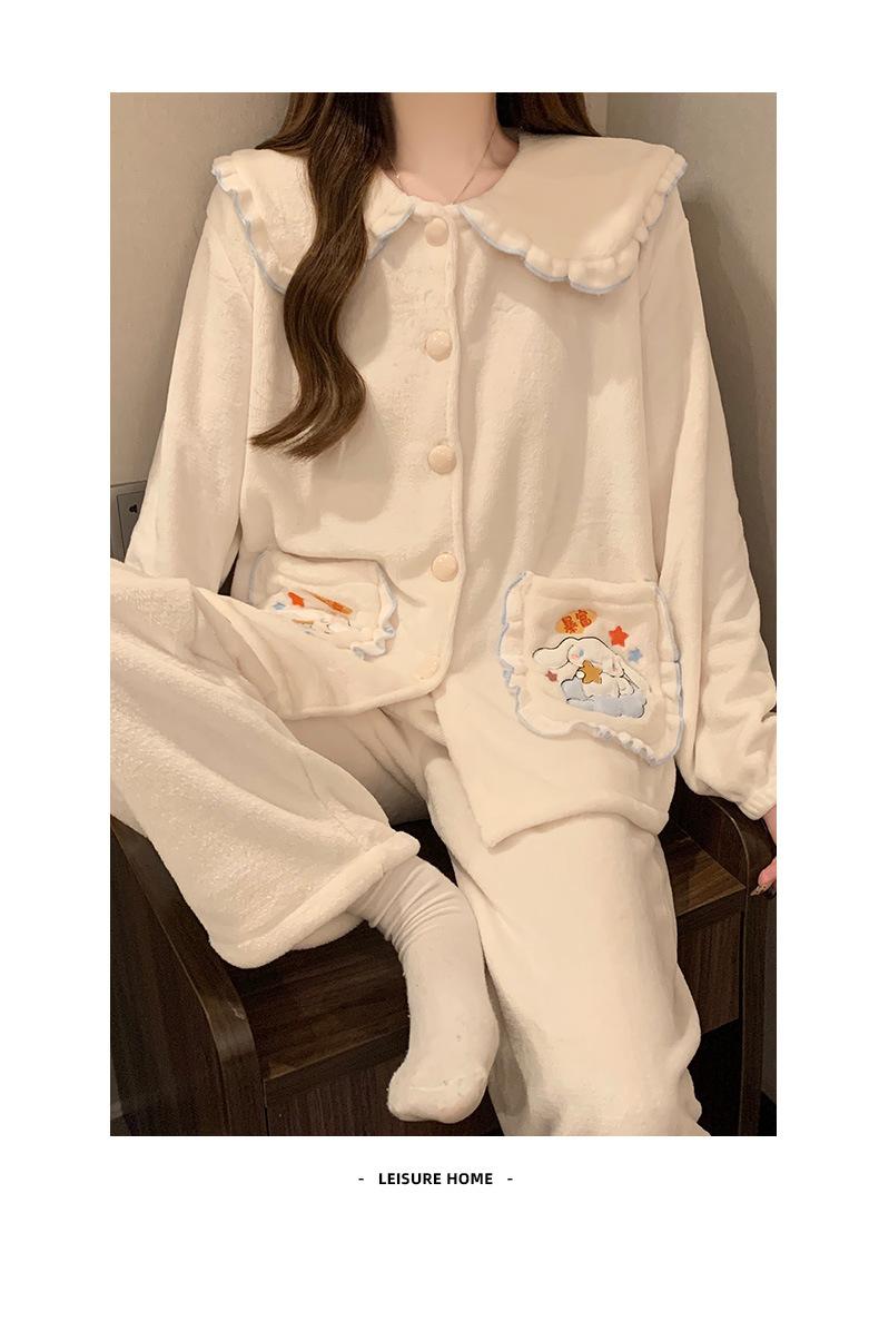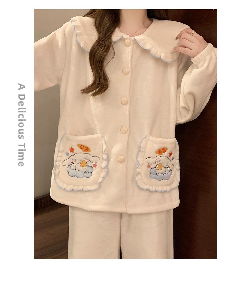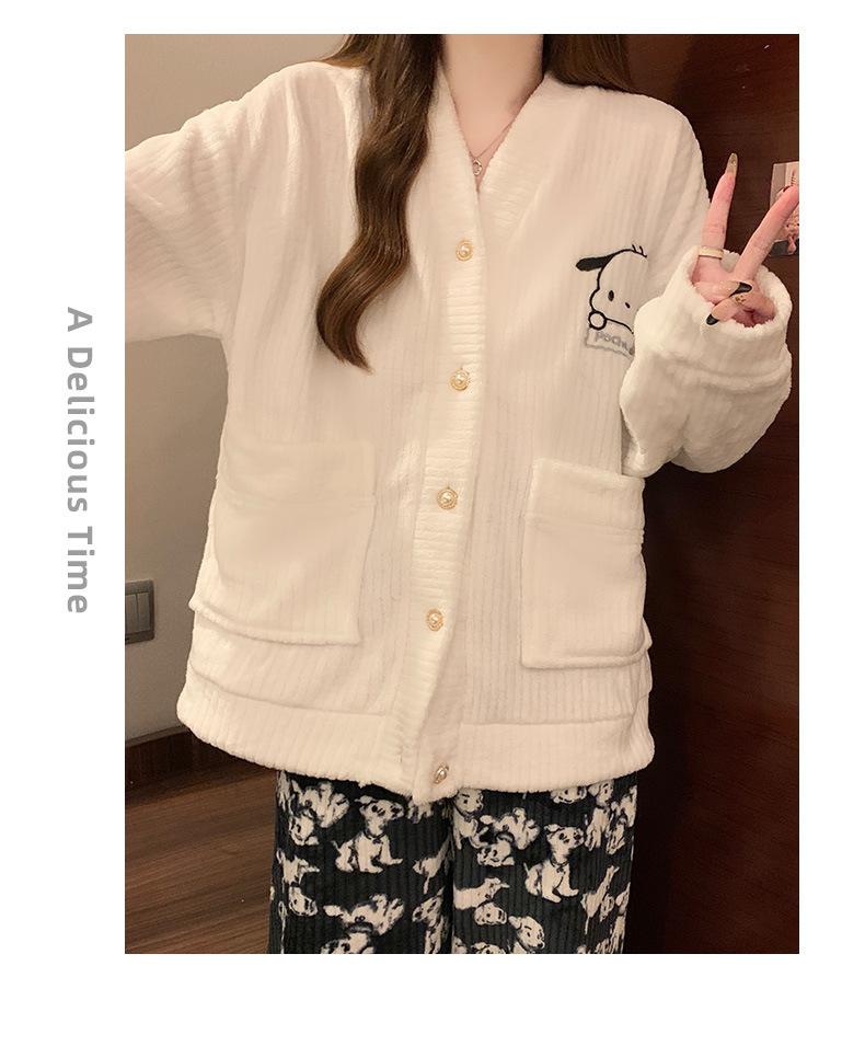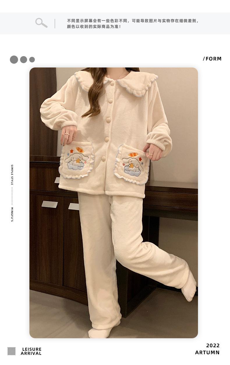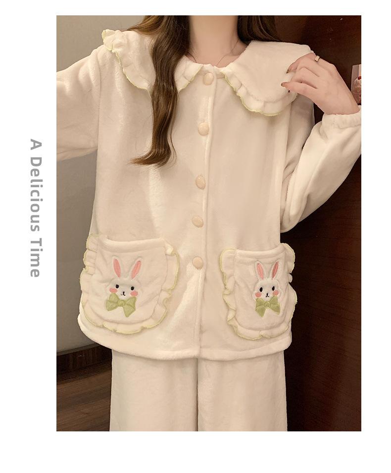 Compra Pijama para Mujer Invierno Estilo Coreano Caricatura Dulce Cárdigan Franela Vellón Coral Engrosado con forro polar Celebridad de Internet Traje para usar en el exterior al por mayor en Joom.pro