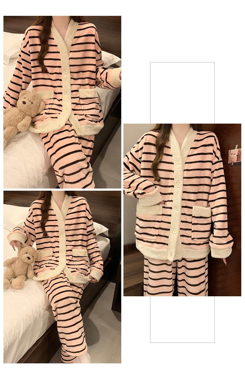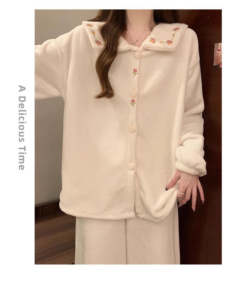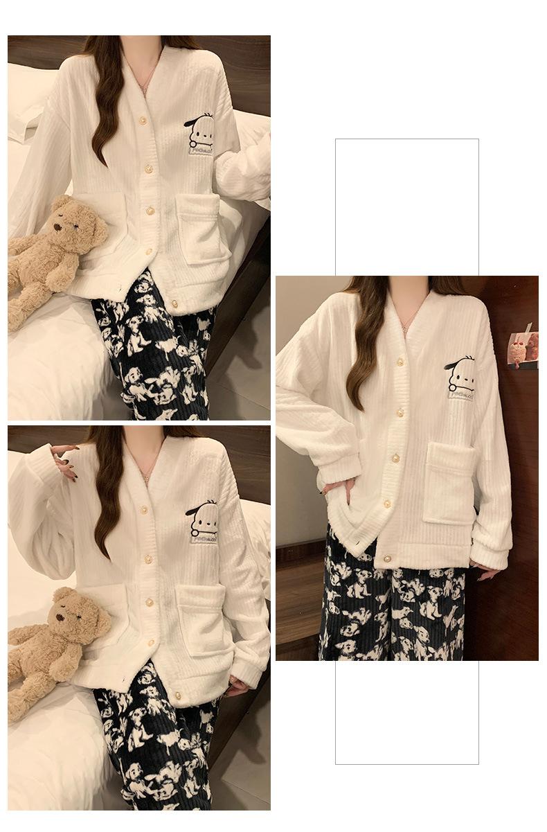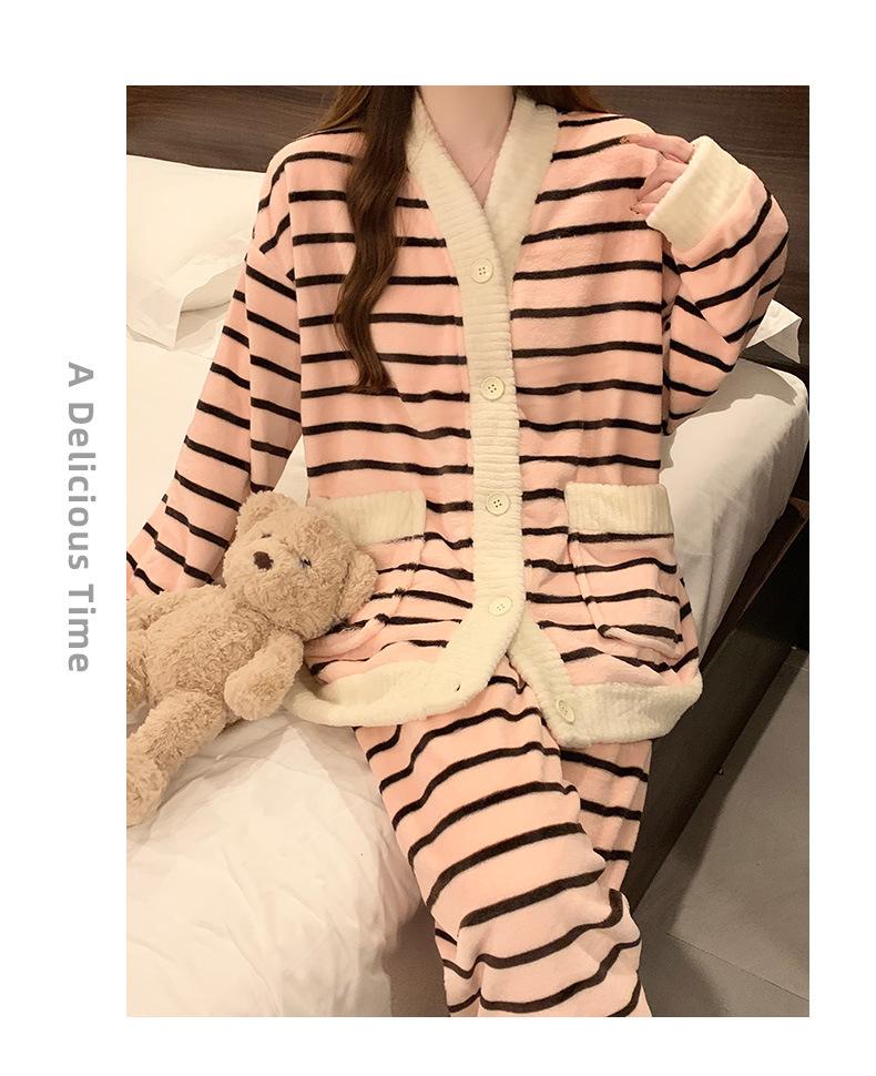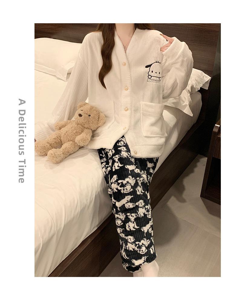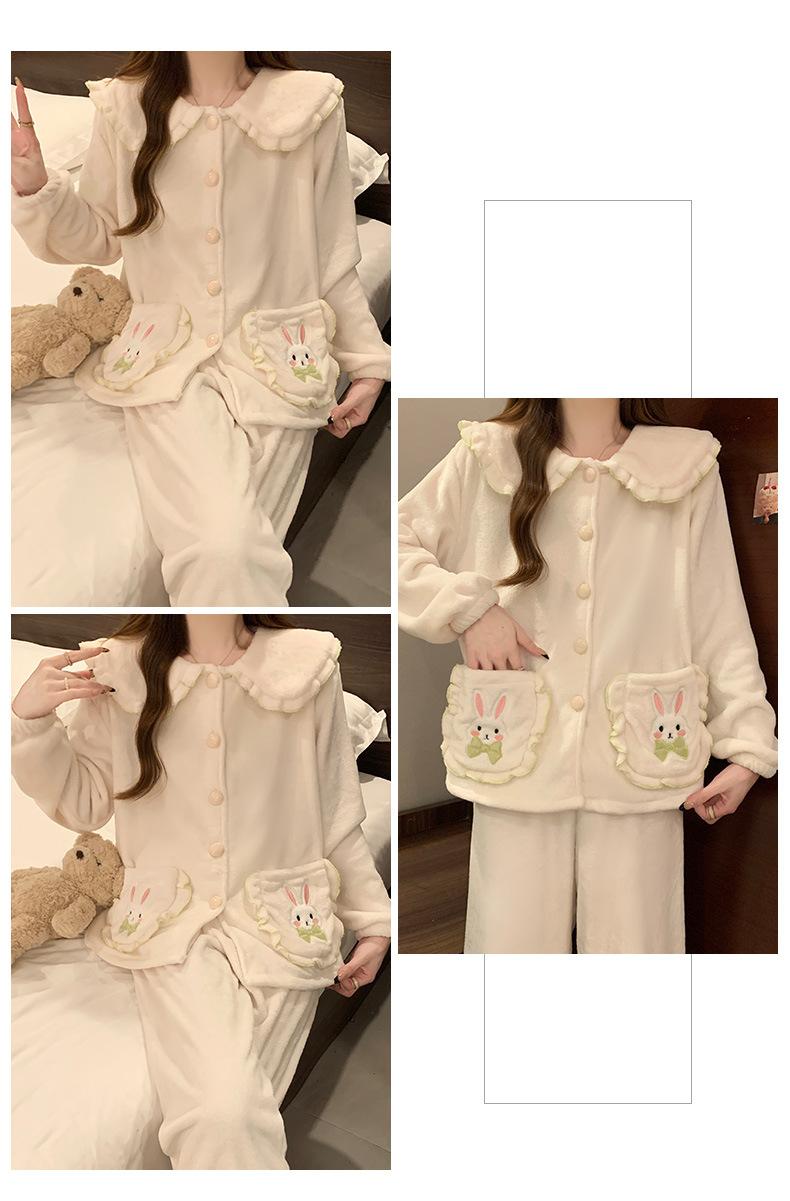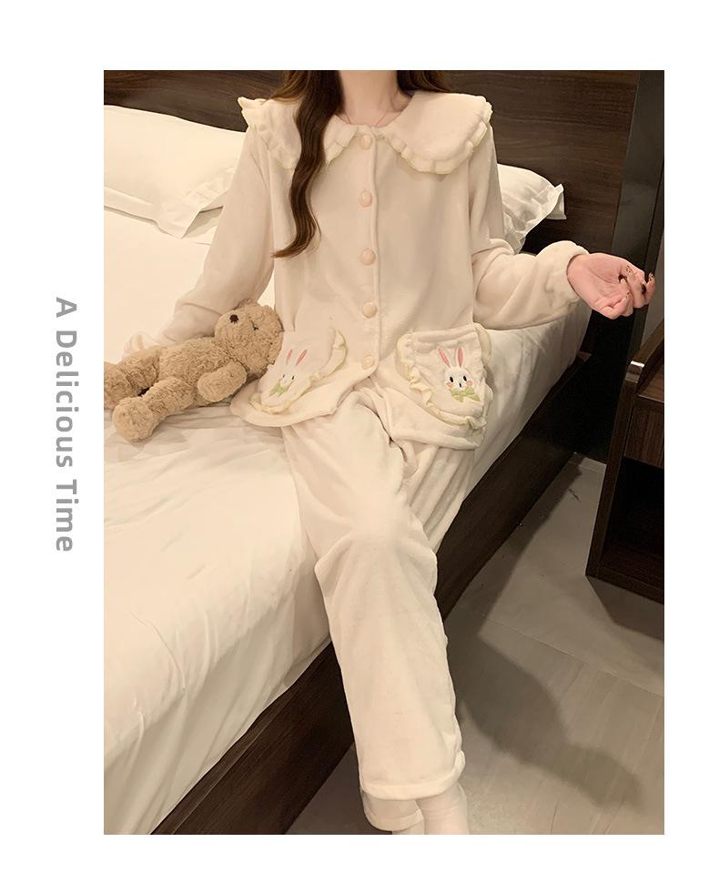 Compra Pijama para Mujer Invierno Estilo Coreano Caricatura Dulce Cárdigan Franela Vellón Coral Engrosado con forro polar Celebridad de Internet Traje para usar en el exterior al por mayor en Joom.pro