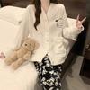 Pijama para Mujer Invierno Estilo Coreano Caricatura Dulce Cárdigan Franela Vellón Coral Engrosado con forro polar Celebridad de Internet Traje para usar en el exterior
