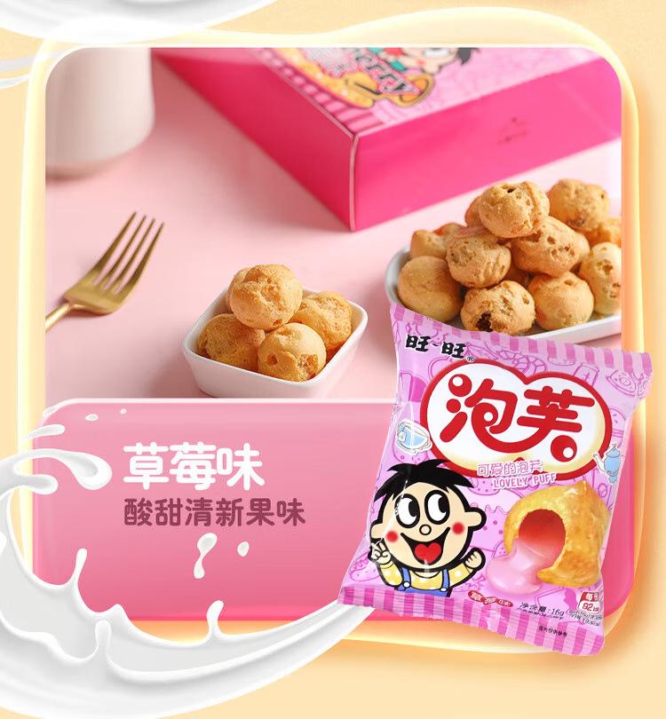 Wangwang Puff Ball 16g Sabor Leche Fresa Chocolate Galleta Puff Sandwich de Crema Snack para Satisfacer Antojos y Ver Drama Snacks