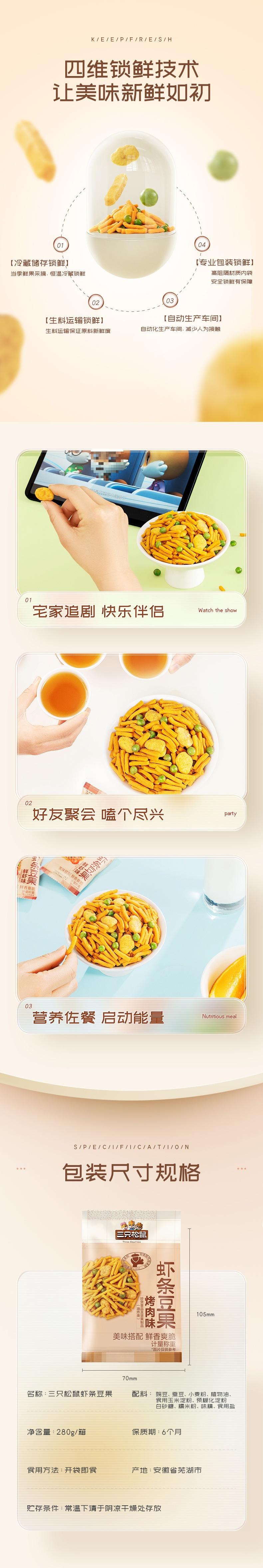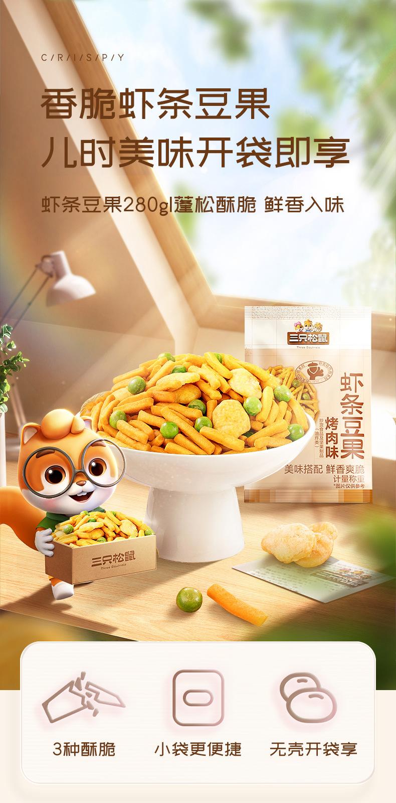 Tres Ardillas_Tiras de Camarón Barra de Fruta de Frijol Sabor Pollo Barbacoa Jugo Habas Guisantes Judías Verdes Productos Fritos Oficina Nueces Snack