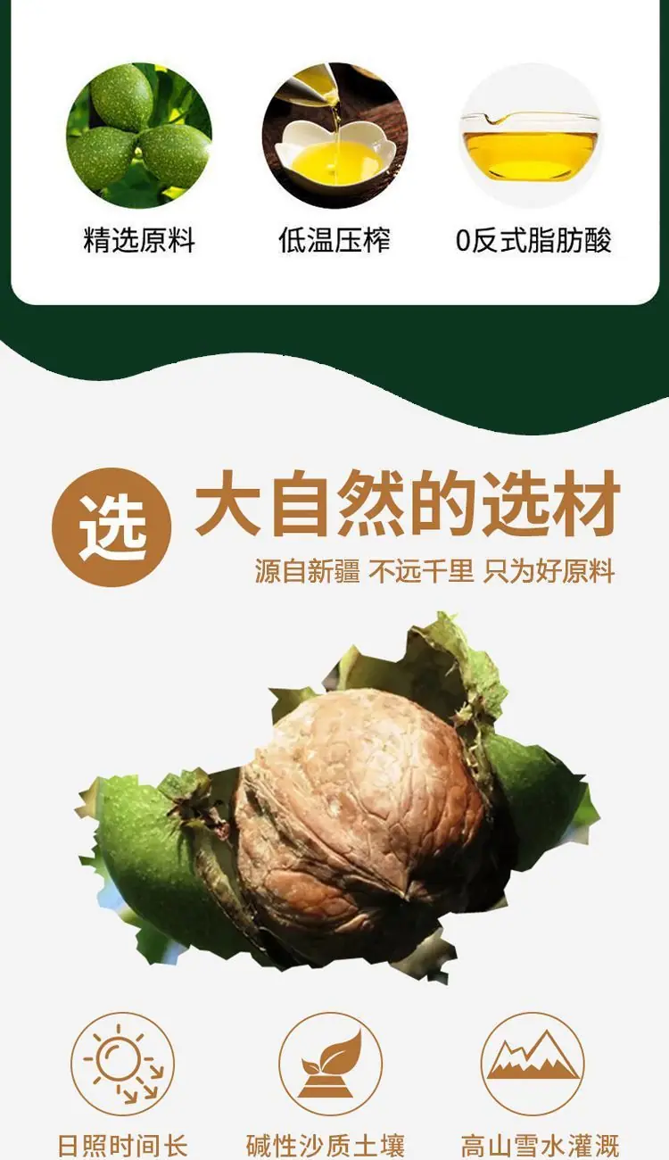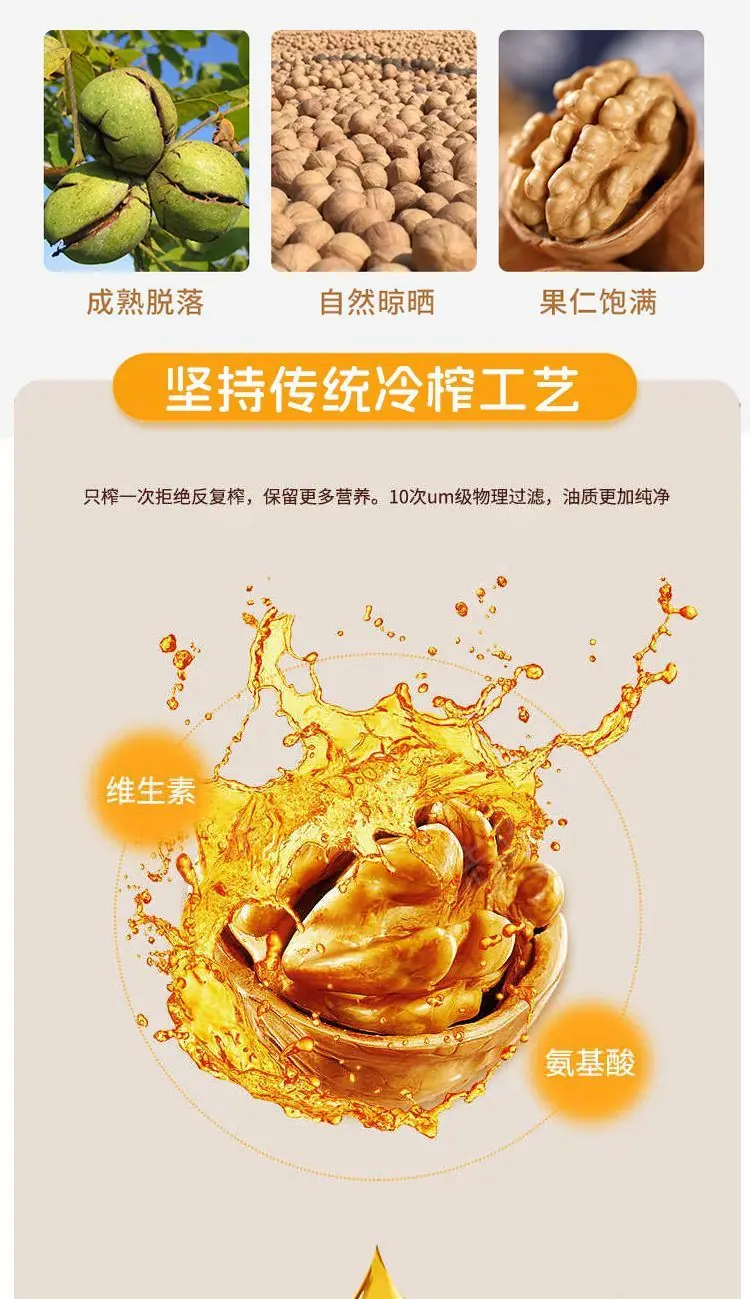 1 bottle of 500ml walnut oil, 2.5l walnut oil, 5 bottles of 500ml walnut oil