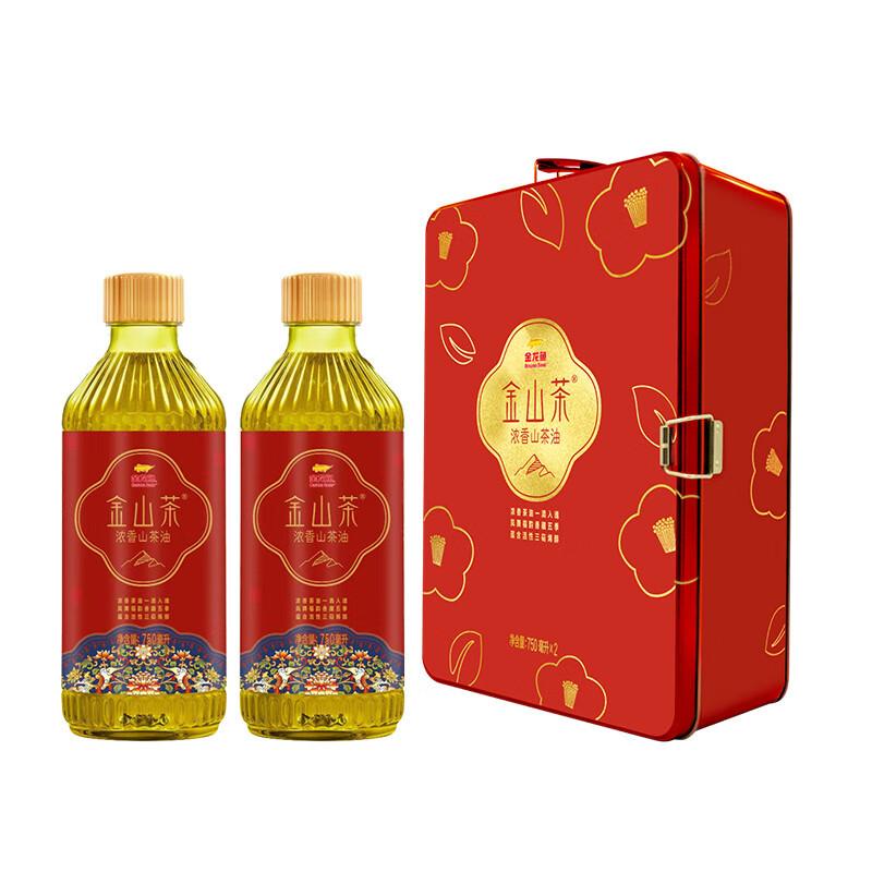 Té de Camelia Aceite de Camelia Fragante 750ml*2 Botellas Caja de Regalo Caja de Lata de Alta Gama Regalo Festivo