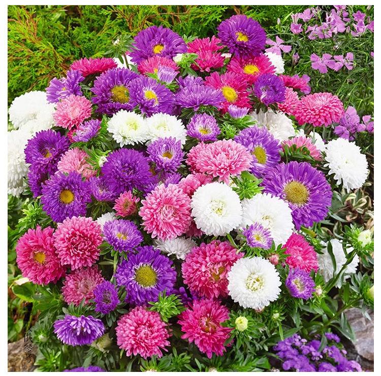 Semillas de Aster Enano de Colores Mezclados, Florales Grandes, Semillas de Flores Fáciles de Cultivar, Semillas de Flores de Jardín, Floración en Cuatro Estaciones, Resistente al Frío Exterior