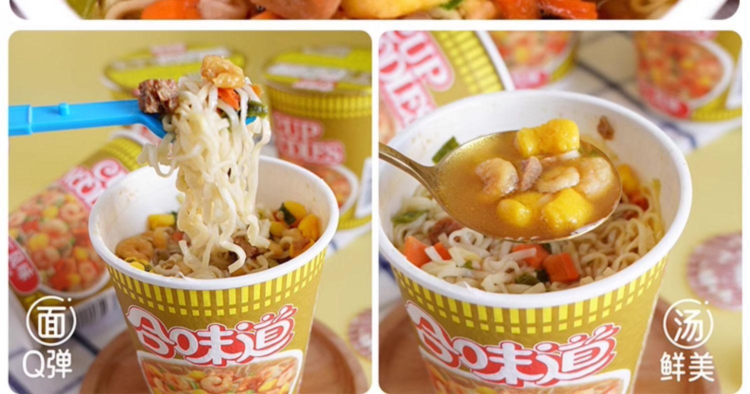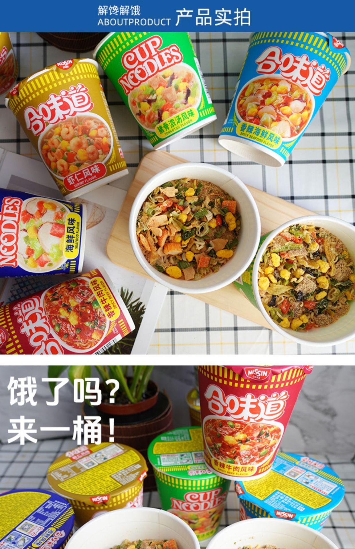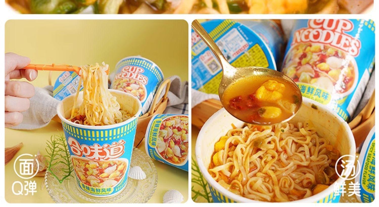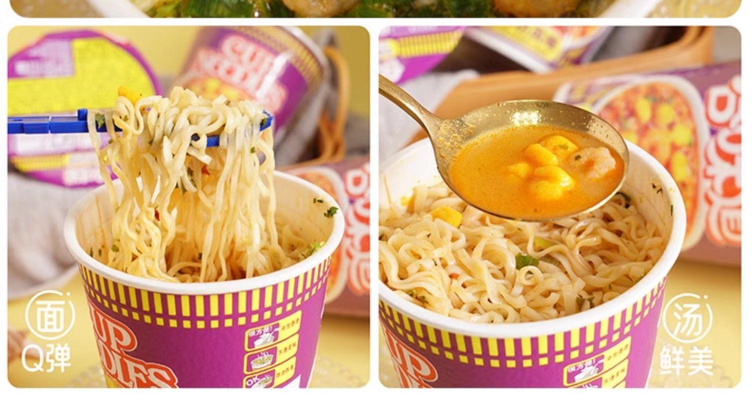 Nissin Cup Noodles Mariscos Sopa Tom Yum Curry Res Oficial Insignia Snack Instantáneo Cubeta Pequeña Caja Completa