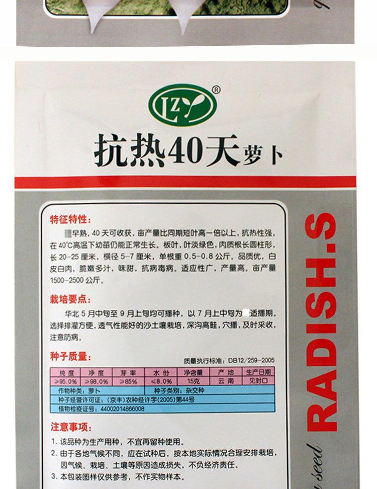 Zhongsheng youbang heat resistant 40 days radish 5g/bag